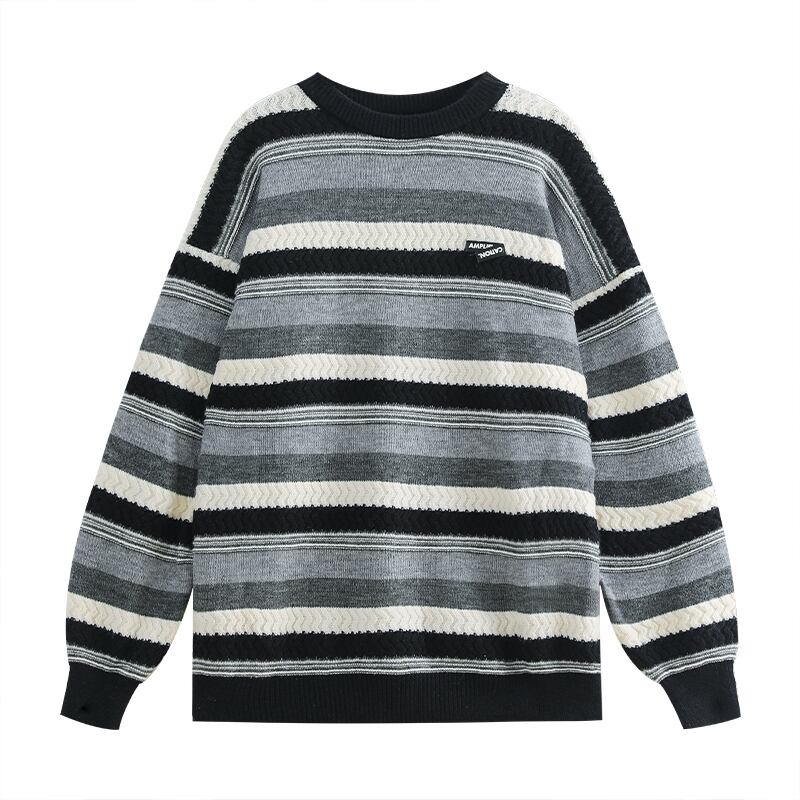 あなたの大好きなトップスが、新しいバージョンで登場しました!レトロ感たっぷりのボーダーデザインが可愛い『レトロボーダーセーターニット』です。黒、グレー、灰色のモノトーン配色で、シンプルながら存在感抜群。袖ありの長袖デザインで、萌え袖、Uネック・ラウンドネックのどちらかをお選びいただけます。ビッグシルエットで、カジュアルなスタイルにもぴったり。冬の寒い日には防寒にもなりますし、着心地も抜群にあたたかいです。秋冬のトレンドアイテムとしても話題沸騰中で、大人可愛いスタイルを手軽に楽しめます。