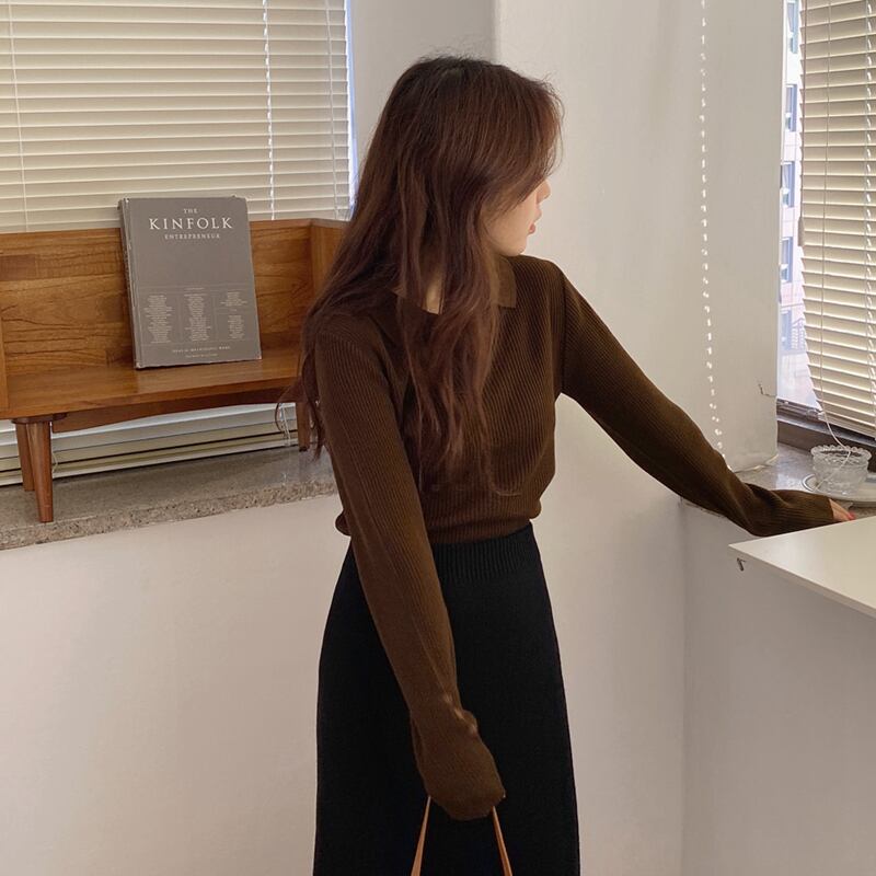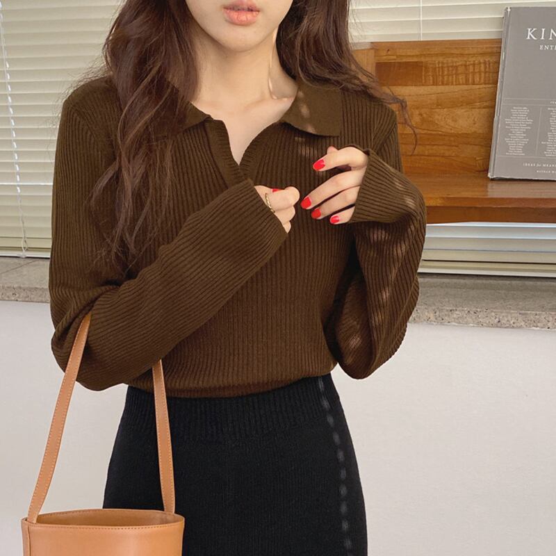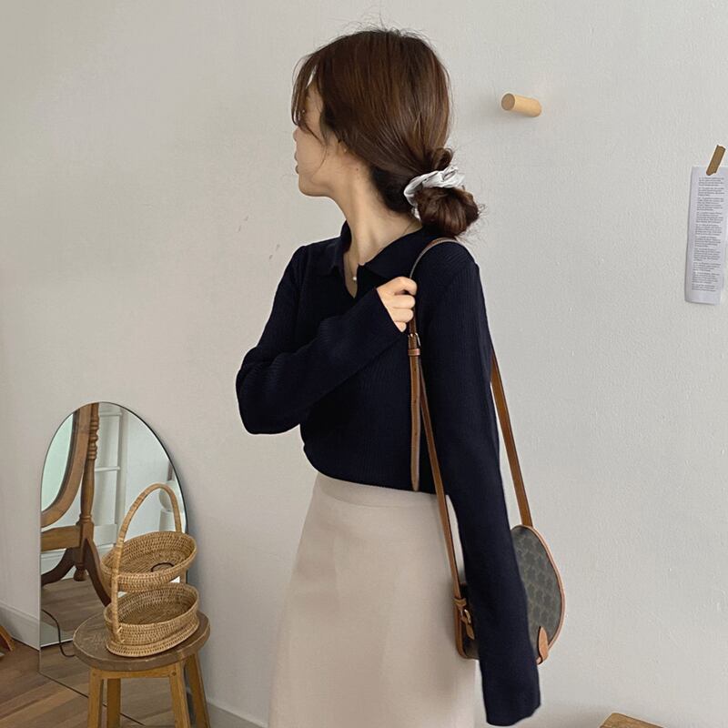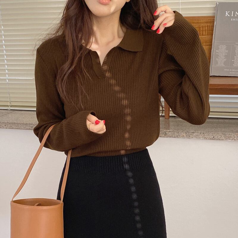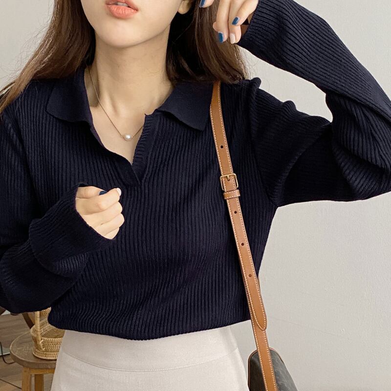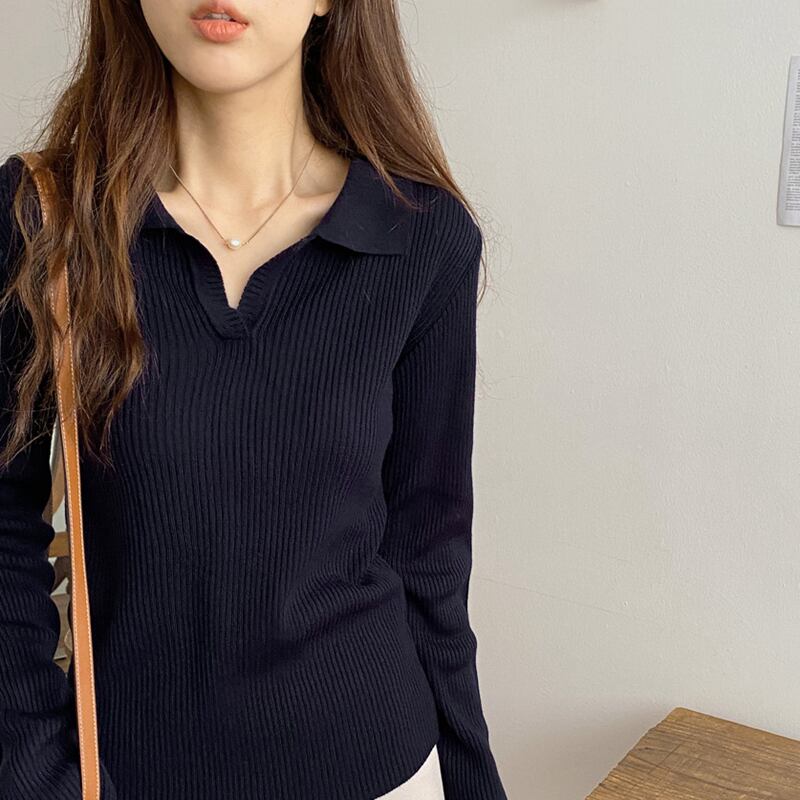 セーター トップス シャツ カットソー 白 ホワイト 紺 ネイビー 茶色 ブラウン ミディアム丈 長袖 Vネック 襟付き ストレート リブ 薄手 きれいめ シンプル カジュアル 大人 大人可愛い 大人女子 こなれ感 ラフ 抜け感 無地 秋 冬 誕生日 クリスマス バレンタイン 10代 20代 30代 レディース オフィス OL 通勤 デート お出かけ 女子会 休日 イベント 旅行 着回し 普段使い 韓国 オルチャン ファッション コーデ スタイル プレゼント プチプラ フリーサイズ 色展開 大人カラー