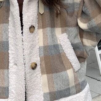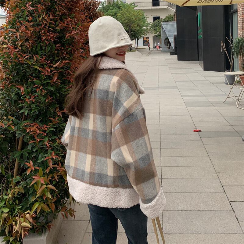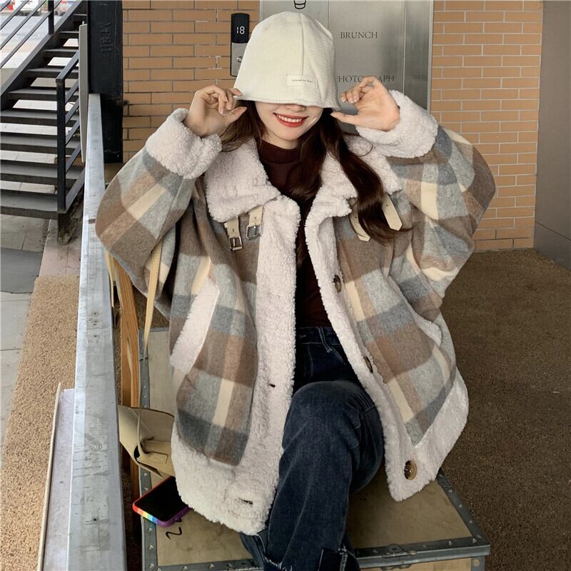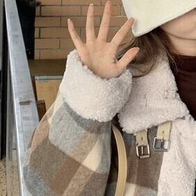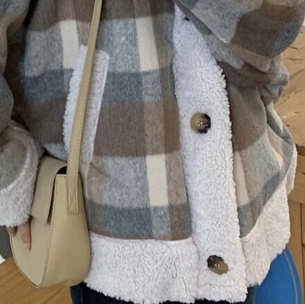 ウールコート アウター ジャケット シャンパー 上着 もこもこアウター ベージュ ショート丈 長袖 ハイネック ストレート ベルト もこもこ モコモコ ふわふわ ポケット 前開き ボタン バイピング ウール 厚手 裏ボア かわいい カジュアル おしゃれ レトロ 大人可愛い こなれ感 ラフ ルーズ 存在感 チェック柄 秋 冬 誕生日 クリスマス 2021 10代 20代 30代 レディース 通勤 通学 デート お出かけ 休日 旅行 公園 普段使い ファッション コーデ 暖かい 防寒 新作 フリーサイズ