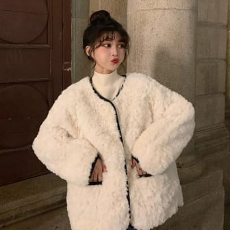 生産・販売に至る経緯は、多くの女性が寒い冬でもオシャレを楽しみたいという想いから生まれました。何かと忙しい現代女性には、着心地の良さや実用性が重要ですよね。そこで、こちらのジャケットは暖かみのあるボア素材を使用しました。さらに、ファー素材を使用したデザインで、この冬トレンドにも乗ったアウターに仕上がっています。