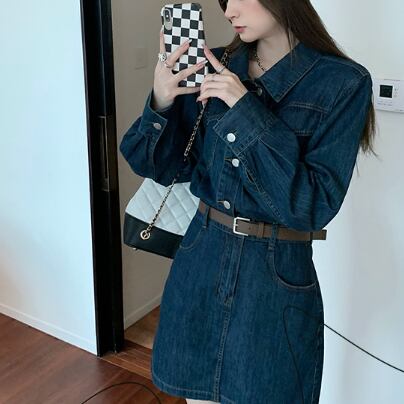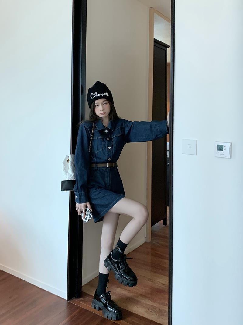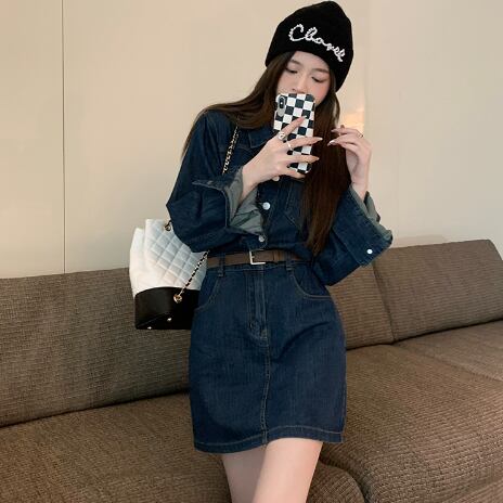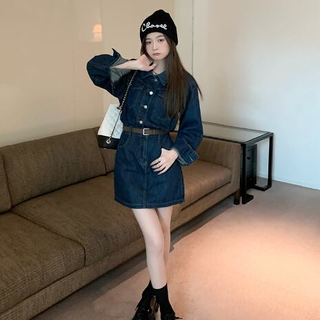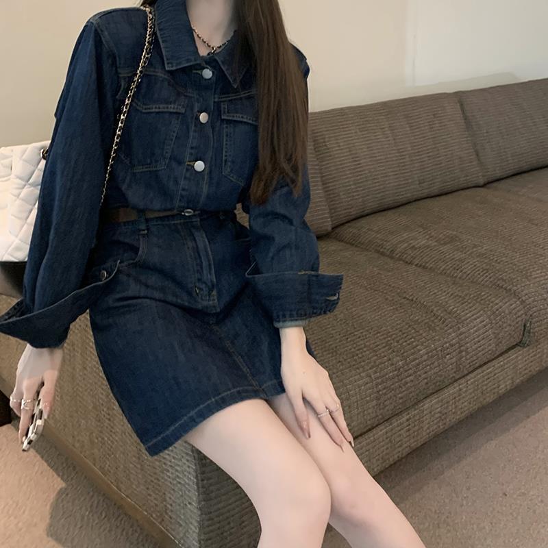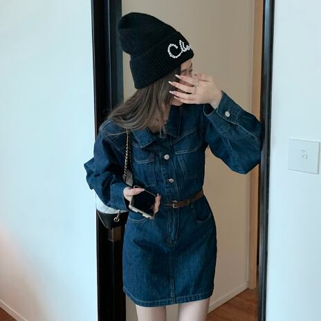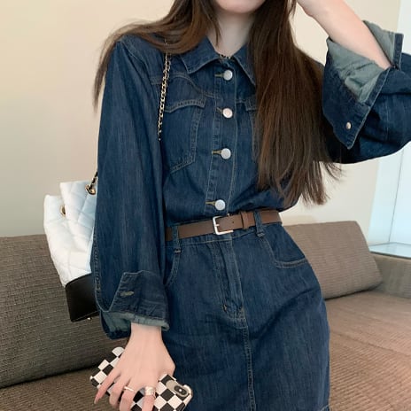 シャツワンピ風のデニムワンピースです。