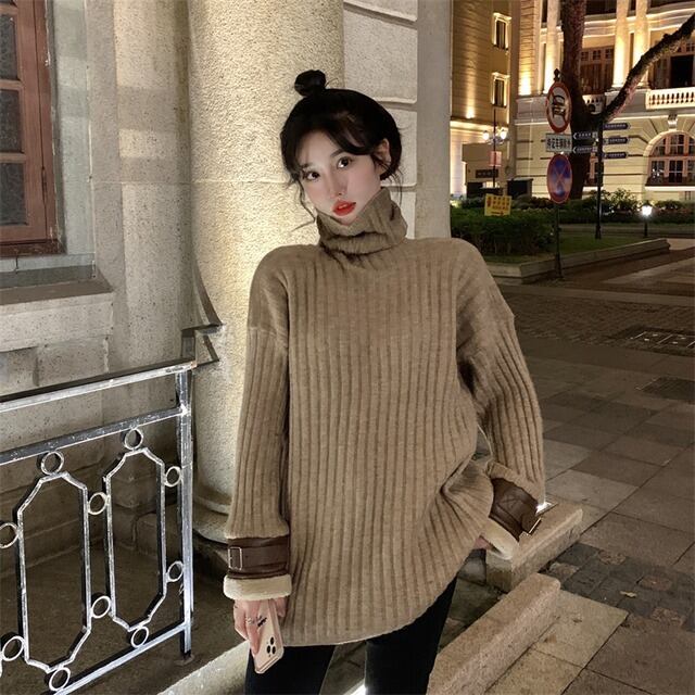 ハイネックセーター レディース 丈長め タートルネック ベルト飾り ドロップショルダー 茶系 白 チュニック ニットセーター 冬アイテム ナチュラル系 トラッド 可愛い おしゃれ トレンド 合わせやすい 着まわせる ラテコーデ 簡単コーデ ヒップカバー お腹カバー 着やすい プルオーバー カジュアル ラフ ゆったりサイズ カフェ ショッピング デート ランチ ワンマイルスタイル 普段使い 韓国ファッション 韓国服 低価格 お買い得 プチプラ 高見え インポート 輸入服 高コスパ 10代 20代 30代