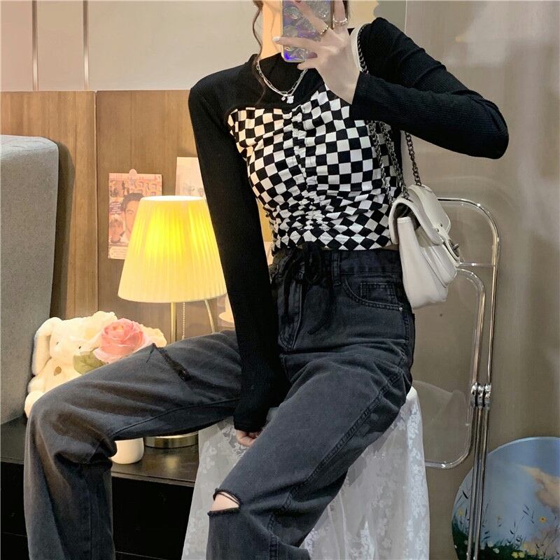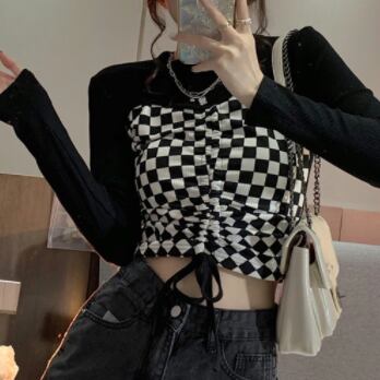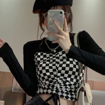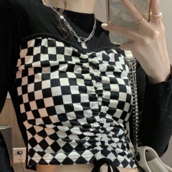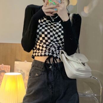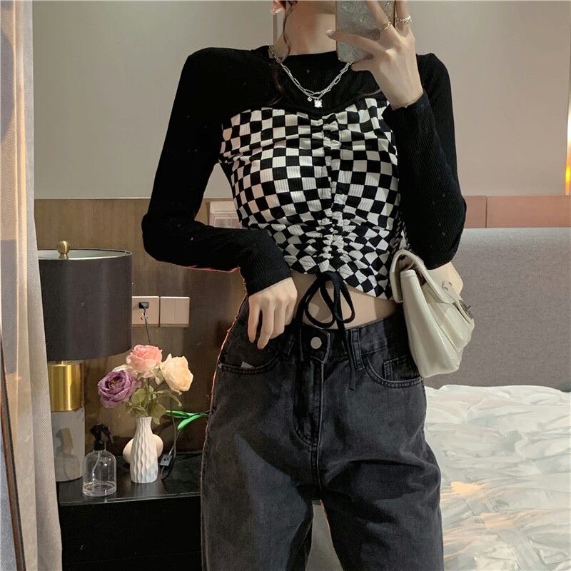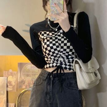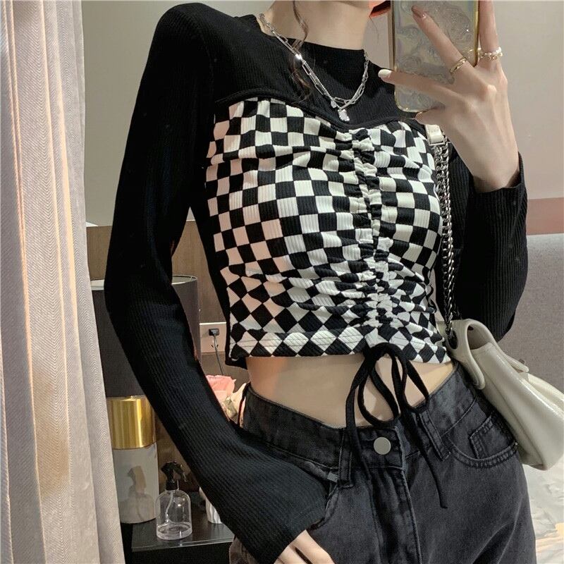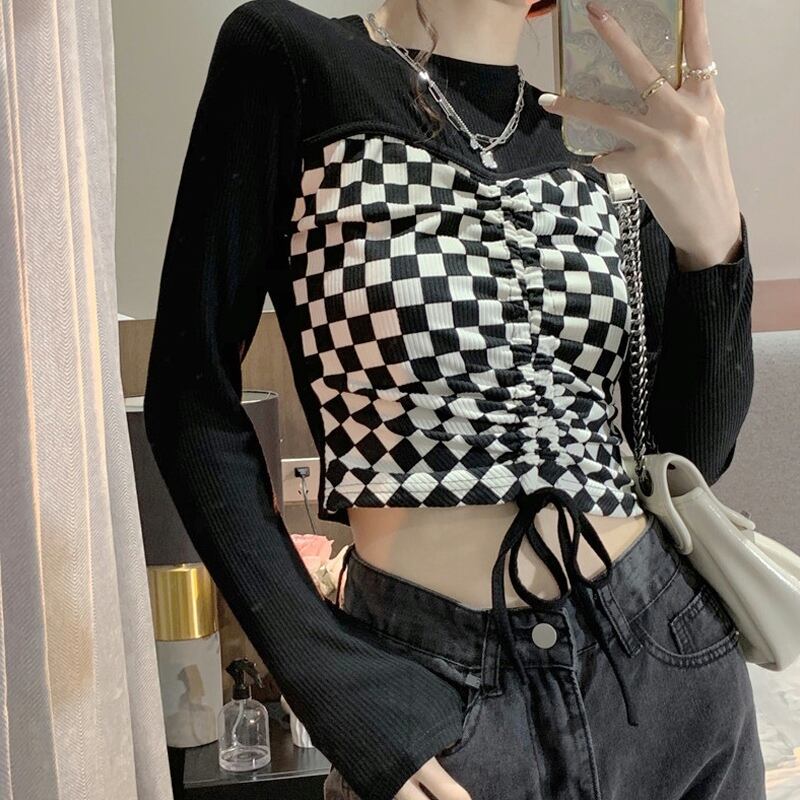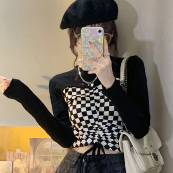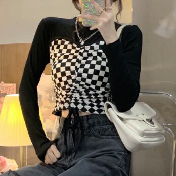 デザイントップス デザインカットソー トップス カットソー ショート ショート丈 長袖 クルーネック 襟なし スリム タイト 細身 切り替えデザイン ドッキング スマート リボン 切り替えデザイン ドッキング 薄手 かわいい 大人可愛い カジュアル おしゃれ お洒落 大人可愛い 大人女子 ラブリー キュート ガーリー 個性的 セクシー 主役級 存在感 チェック柄 春 夏 10代 20代 レディース 女性用 デート お出かけ 女子会 お泊まり 休日 着回し 韓国 韓国系 ファッション コーデ スタイル モテ