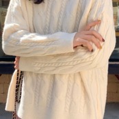 このニットトップスは、かわいさと大人っぽさが同居した一着です。ラウンドネックでシンプルなデザインながら、袖口のケーブルニット編み込みが上品なアクセントに。無地なので、どんなボトムスとも合わせやすく、オフィスからデートまで幅広く着回せます。また、季節を問わず使えるアイテムなので長く愛用いただけます。