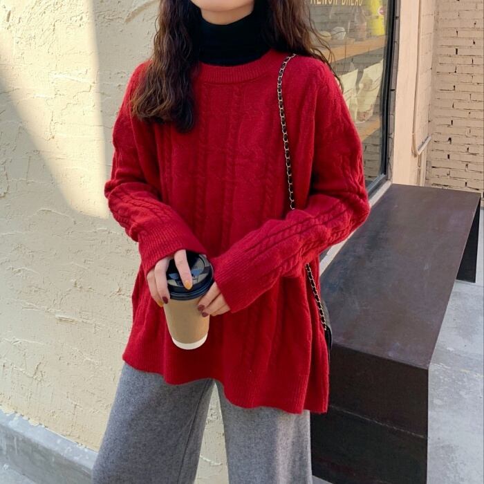 ニットトップス トップス セーター 袖あり 長袖 ラウンドネック ケーブルニット 編み込み かわいい 大人可愛い シンプル 大人 上品 おしゃれ お洒落 大人可愛い 大人女子 キュート ガーリー 無地 春 秋 冬 10代 20代 30代 女性用 ママ 女の子 オフィス ビジネス OL 通勤 学生 通学 デート お出かけ 女子会 休日 韓国 韓国系 オルチャン ファッション コーデ スタイル モテ 新作 定番 送料無料 トレンド 流行 インスタ映え 赤 レッド オレンジ インポート 海外 着回し