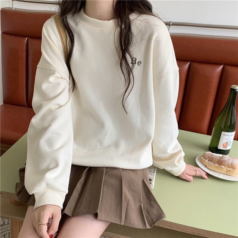 クルーネックで首元がすっきりと見えるので、首元のアクセサリーやヘアアレンジが映えるのも嬉しいポイント。特に今どきの韓国系ファッションには欠かせないデザインです。