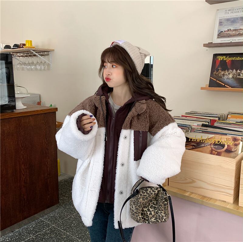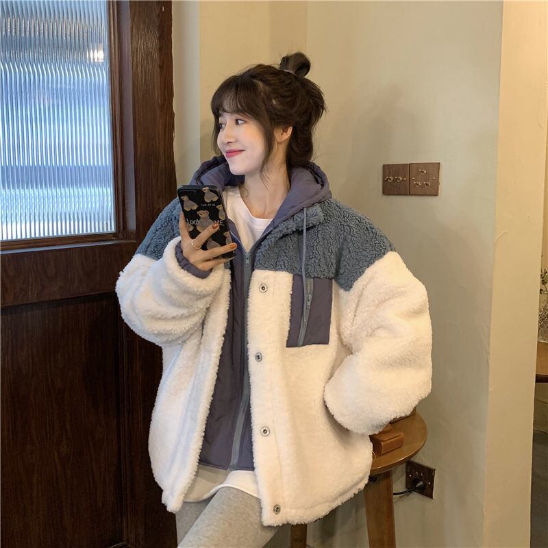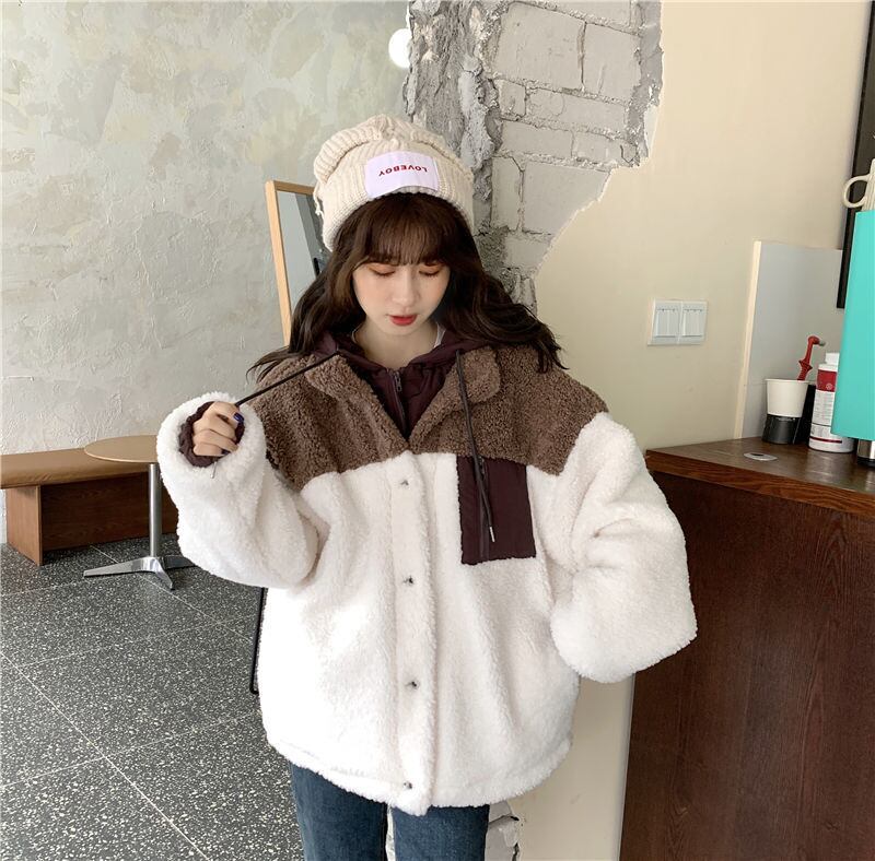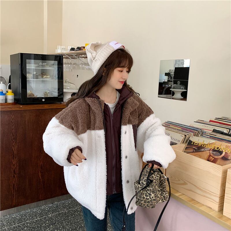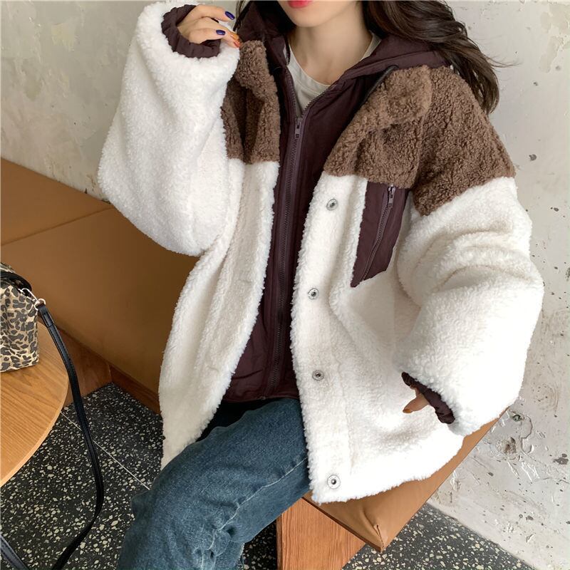 アウター コート 魅せる ジャケット ブラウン 茶色 ブルー 青 レギュラー丈 袖あり 長袖 フード ワイド ポケット ファスナー ジッパー ポリエステル フェイク2ピース 大人女子 大人 上品 おしゃれ かっこいい クール カジュアル レトロ レトロ風 こなれ感 ラフ ルーズ シルエット 個性的 デザイン 主役級 存在感 無地 配色 秋 冬 10代 20代 30代 レディース 女性用 通勤 学生 通学 着回し 普段使い S M L XL 2XL 3XL 大きいサイズ