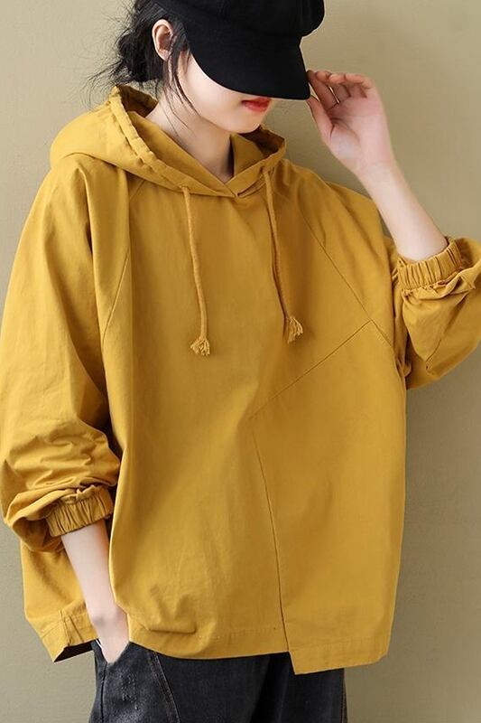 リラックス感のあるパーカーが、この秋注目のトップスです。黒とイエローの組み合わせがレトロな雰囲気を醸し出し、上品でおしゃれな印象を与えます。フード付きのワイドシルエットで、着れば一気にこなれ感が出ます。アシンメトリーな裾と袖が個性的なデザインで、主役級の存在感があります。