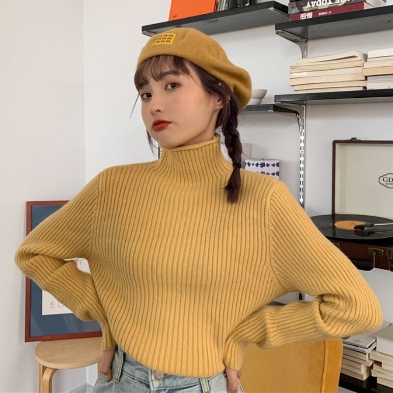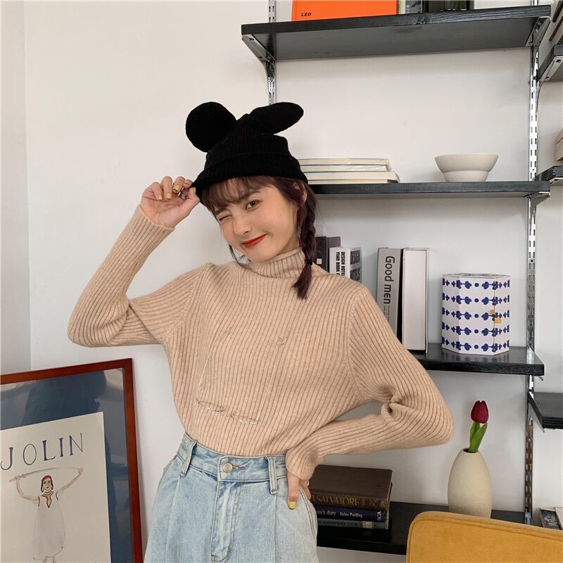 ニットセーター ニットトップス リブニット トップス セーター 長袖 ハイネック タートルネック 襟なし 細身 リブ かわいい 大人可愛い シンプル カジュアル 大人 おしゃれ お洒落 大人可愛い 大人女子 こなれ感 ラフ キュート ガーリー 抜け感 無地 春 秋 冬 10代 20代 30代 レディース 女性用 ママ 女の子 学生 デート お出かけ 女子会 お泊まり 休日 着回し 普段使い 韓国 韓国系 ファッション コーデ スタイル 新作 定番 送料無料 トレンド 流行 インポート 海外 着回し