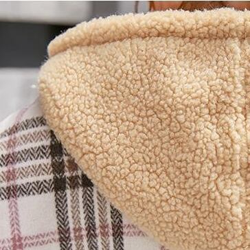 さらに、チェック柄がおしゃれなポイントで、ファッション性も抜群!前開きなので脱ぎ着もしやすく、フードとポケットがついているので、暖かくて機能的。厚手の素材で、防寒性もバッチリです。