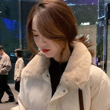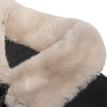 襟のファーがもこもこで可愛いキルティングコートです。