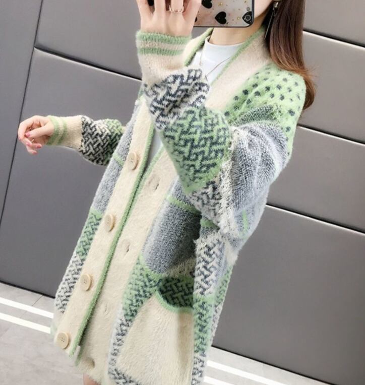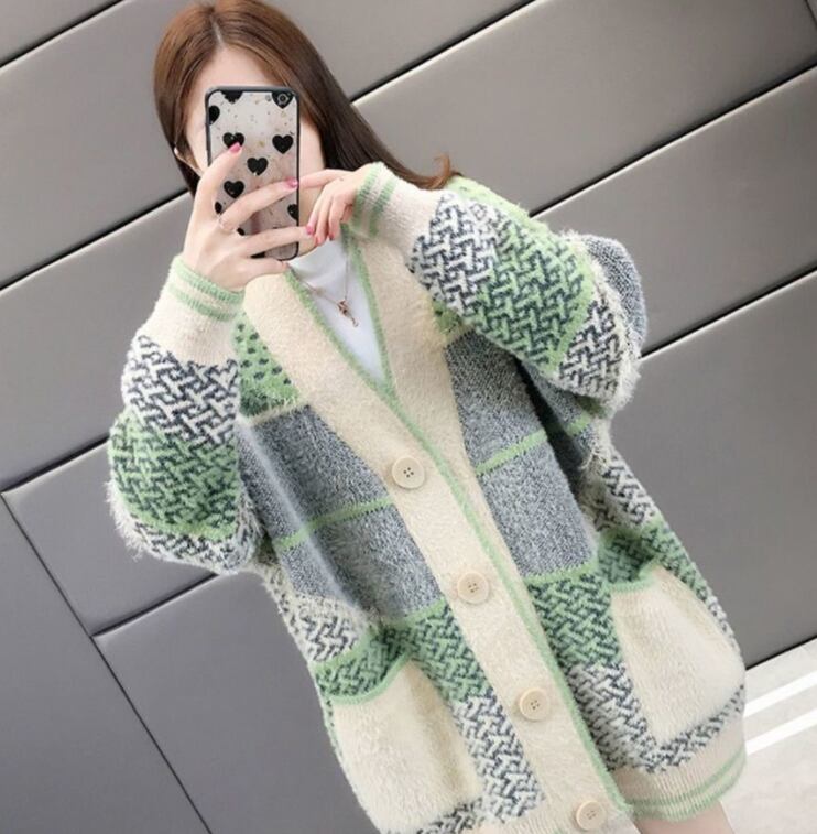 アウター セーター カーディガン 上着 ミディアム丈 長袖 Vネック 襟なし かわいい 大人可愛い 大人 上品 おしゃれ お洒落 レトロ 大人可愛い 大人女子 こなれ感 ラフ ラブリー キュート ガーリー ルーズ 個性的 主役級 存在感 抜け感 柄 チェック柄 春 秋 10代 20代 30代 レディース 女性用 女の子 通勤 学生 通学 デート お出かけ 女子会 お泊まり 休日 普段使い 韓国 韓国系 ファッション コーデ スタイル 楽ちん 暖かい モテ 新作 定番 送料無料 インポート 海外 人気
