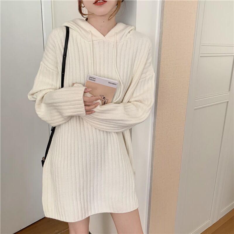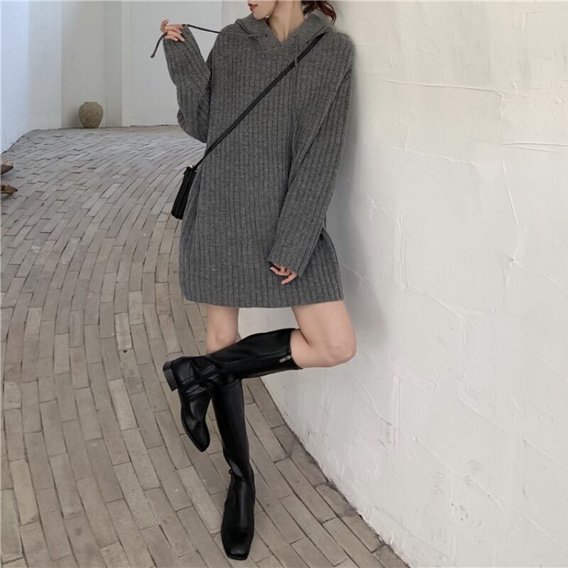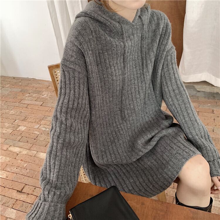 オーバーニット グレー ブラック ホワイト トップス ニットソー セーター 長袖 Uネック フード付き スリム 細身 ストレート Iライン 編み込み ニット かわいい シンプル お洒落 大人可愛い 大人女子 ラフ ラブリー キュート ガーリー エレガント 存在感 無地 秋 冬 誕生日 二次会 披露宴 ハロウィン クリスマス バレンタイン レディース 女性用 学生 通学 デート お出かけ 女子会 お泊まり 休日 イベント 旅行 ホテル レストラン 着回し 普段使い 韓国系 オルチャン ファッション 楽ちん