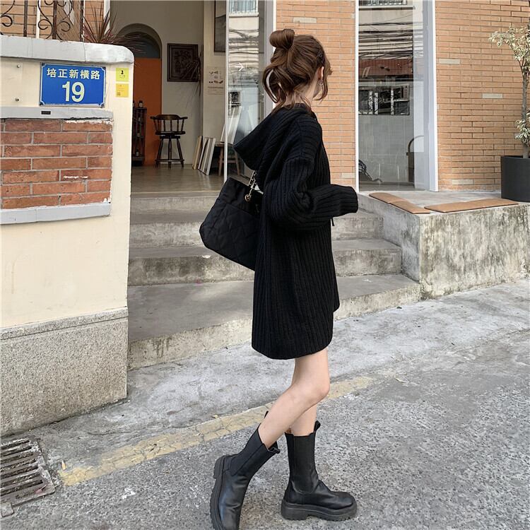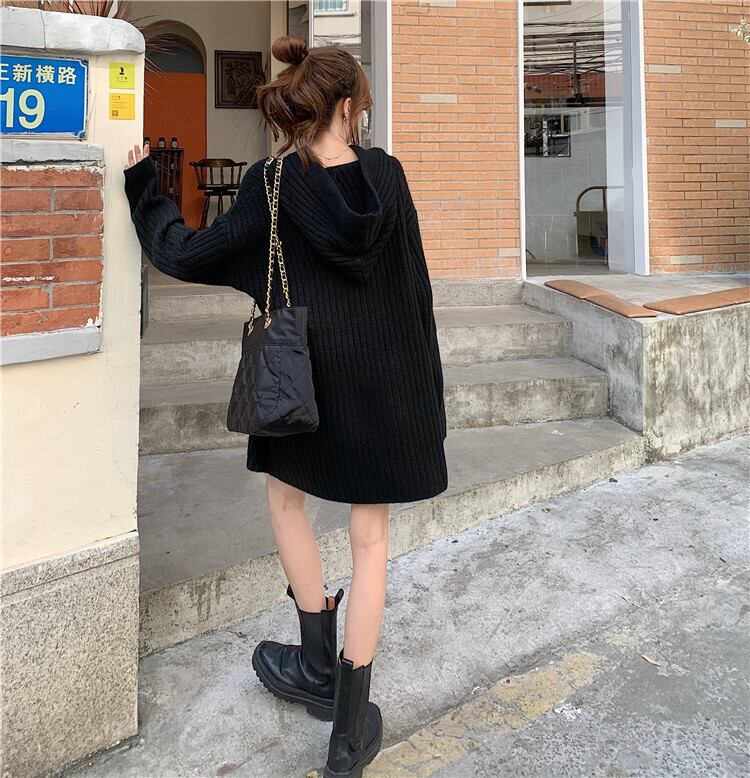 ロングタイプのフード付きニットになります。