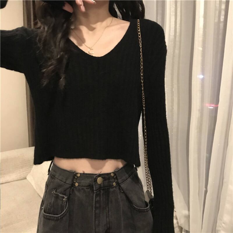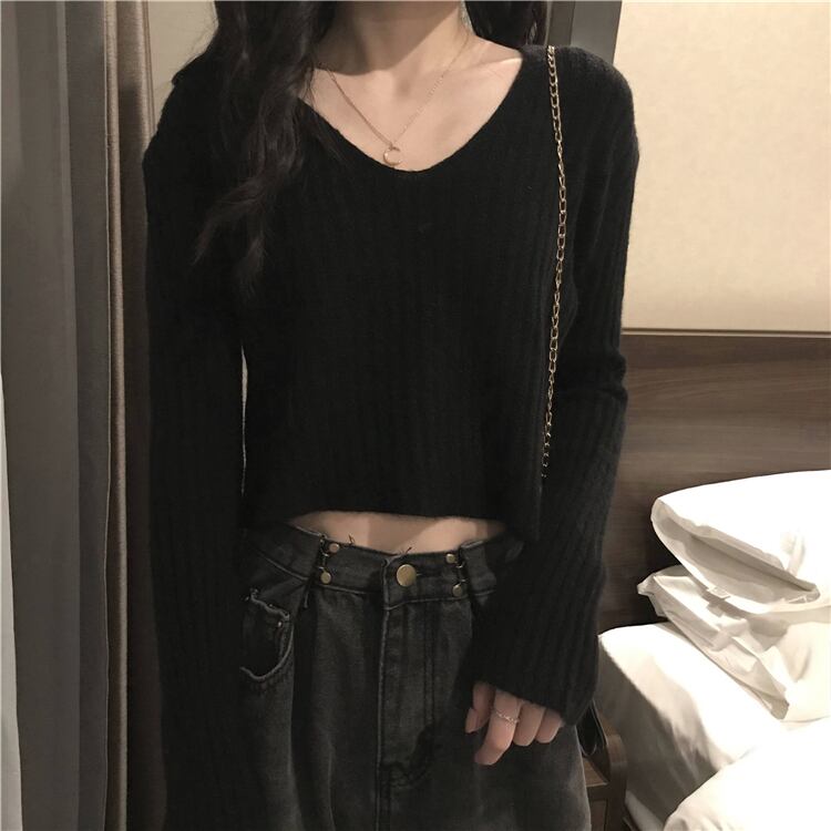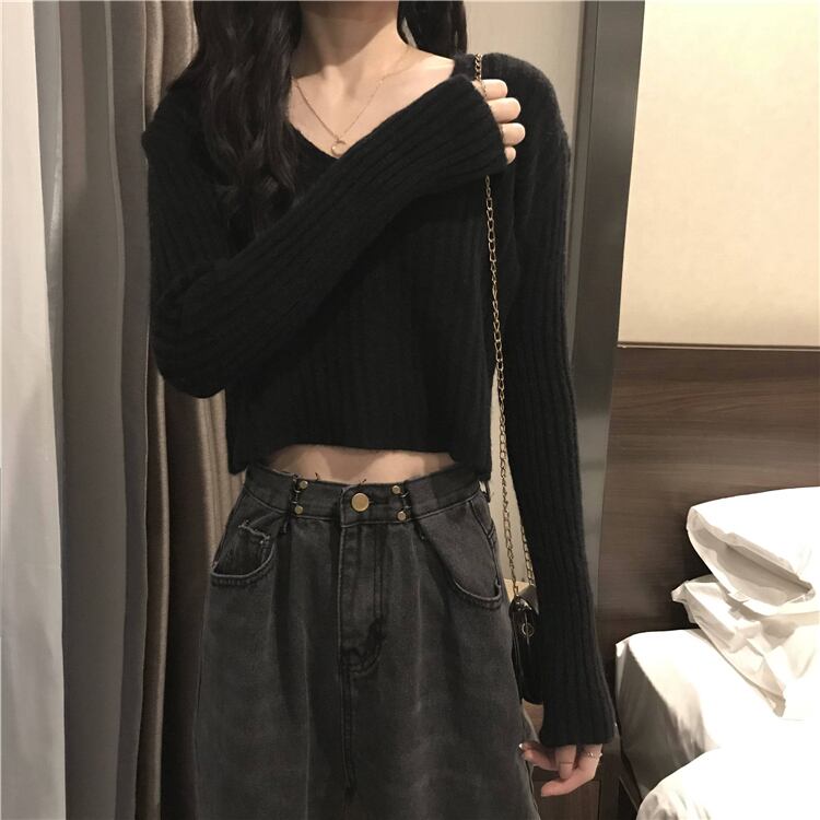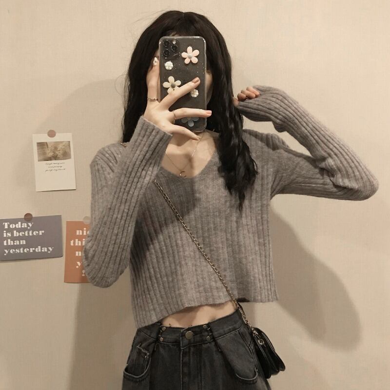 ショート丈でへそ出しセクシーなニットです‼