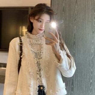 「魅せるショートジャケット」は、ツイード素材とホワイトの無地が華やかな、大人女子必見のトップスです。レギュラー丈で袖あり、Vネックにストレートなシングルブレストのボタン仕様が上品でシンプル。フリンジがアクセントになり、レトロ風のこなれ感をプラスしました。