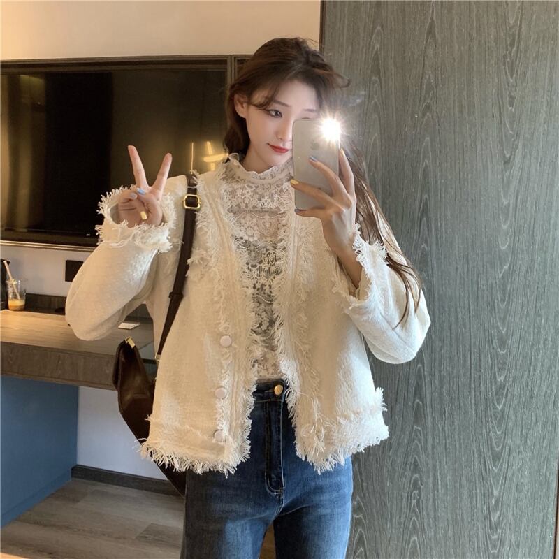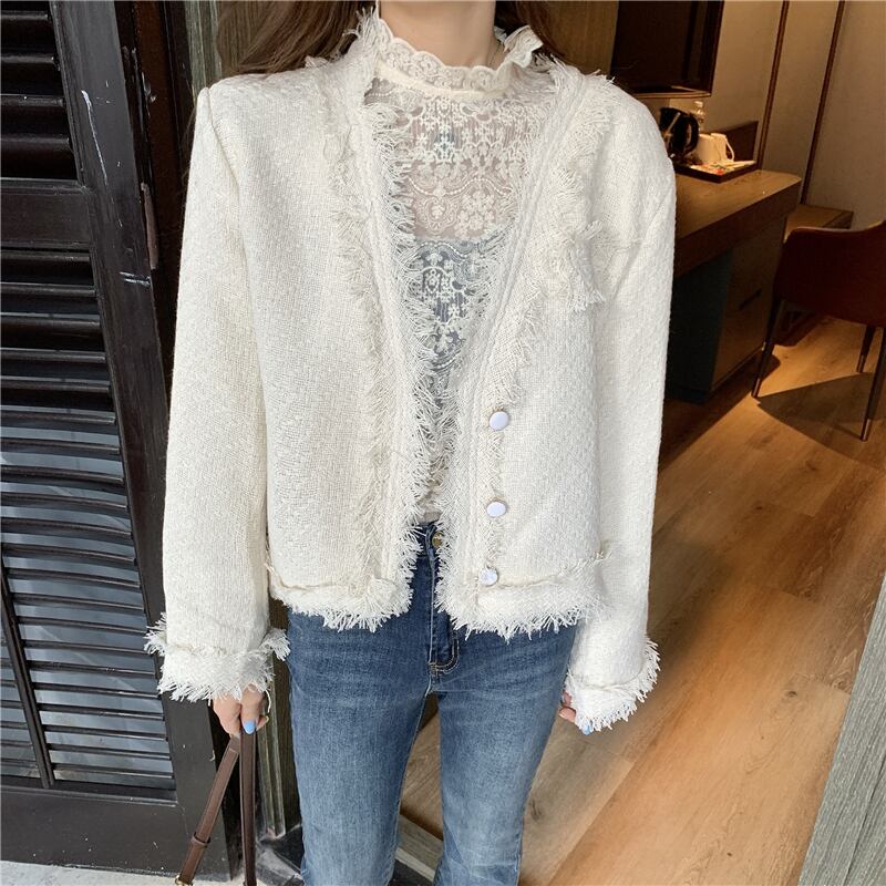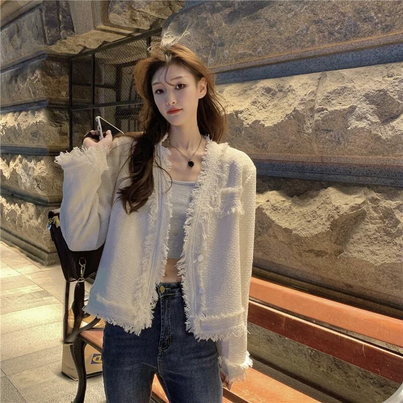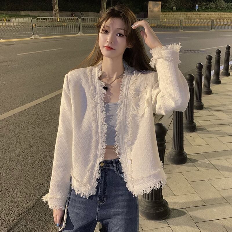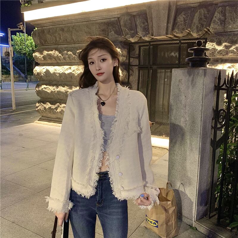 ショートジャケット ツイード 魅せる トップス ジャケット ホワイト 白 レギュラー丈 袖あり 長袖 Vネック ストレート シングルブレスト ボタン フリンジ 大人女子 大人 上品 おしゃれ きれいめ シンプル カジュアル レトロ レトロ風 こなれ感 ラフ ルーズ シルエット キュート ガーリー かわいい 女子 個性的 デザイン 主役級 存在感 無地 春 スプリング 秋 オータム 10代 20代 30代 レディース 女性用 オフィス ビジネス OL 通勤 学生 通学 ワンサイズ