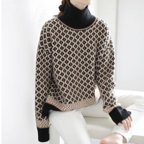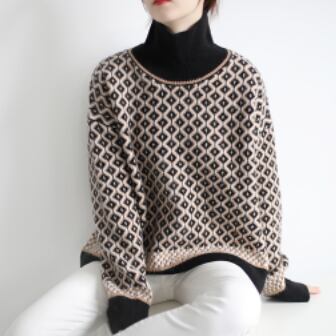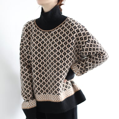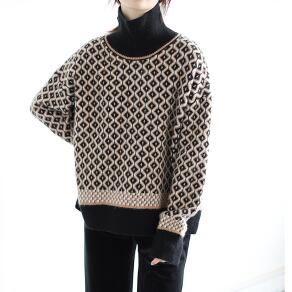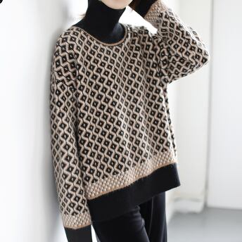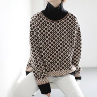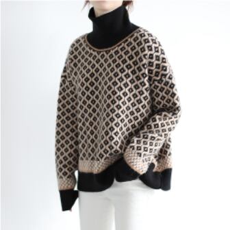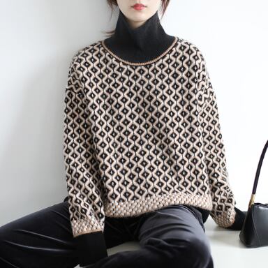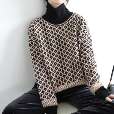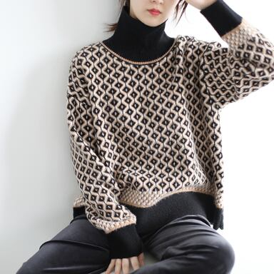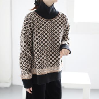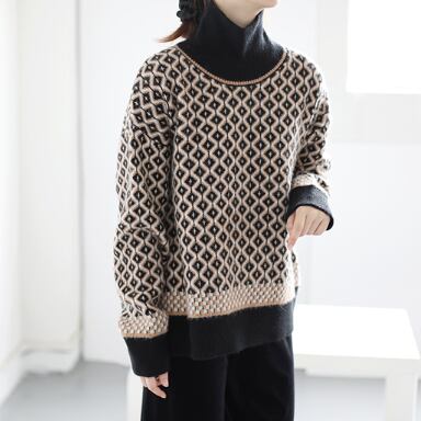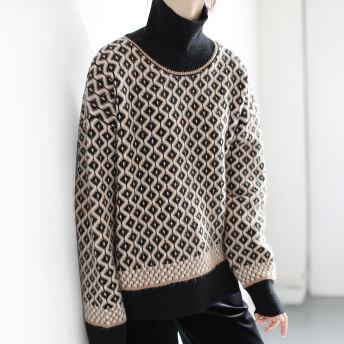レトロな模様が目を引くハイネックセーター