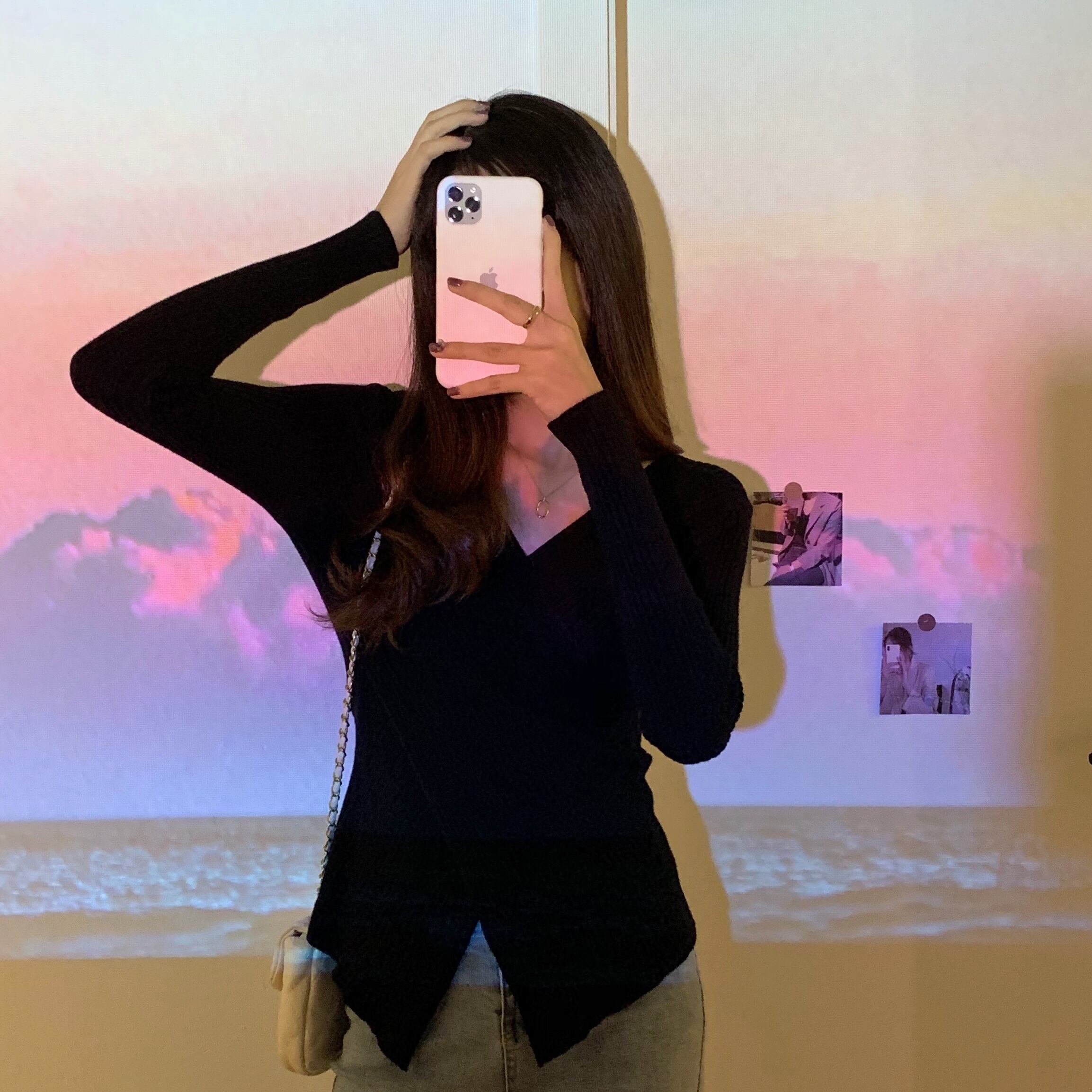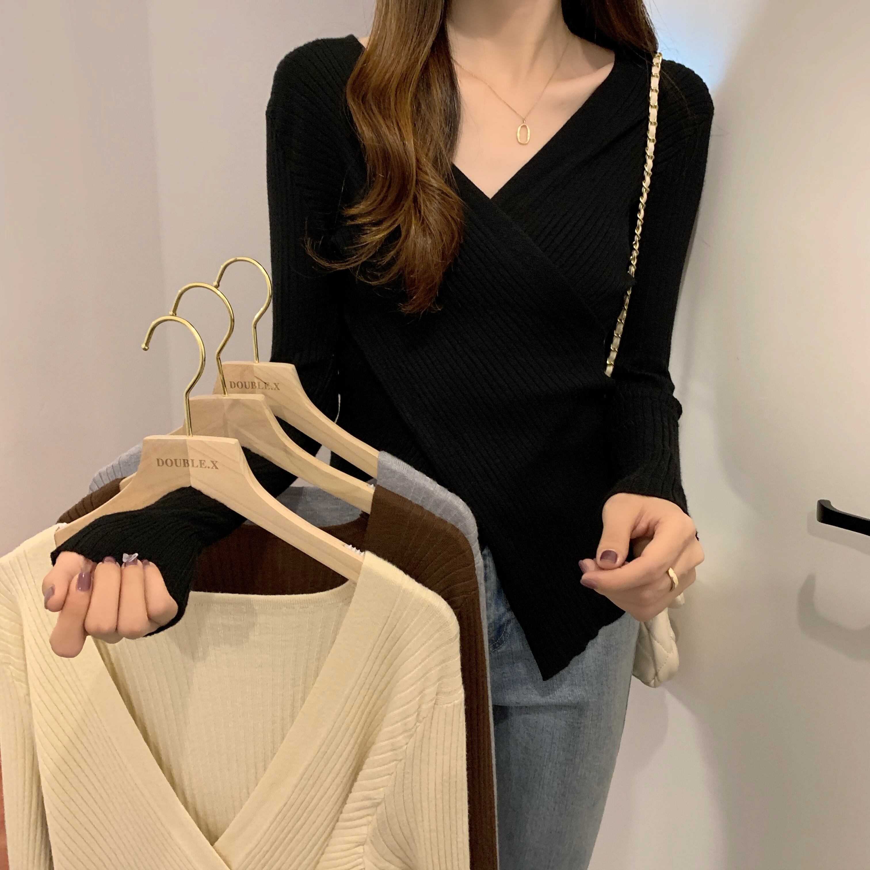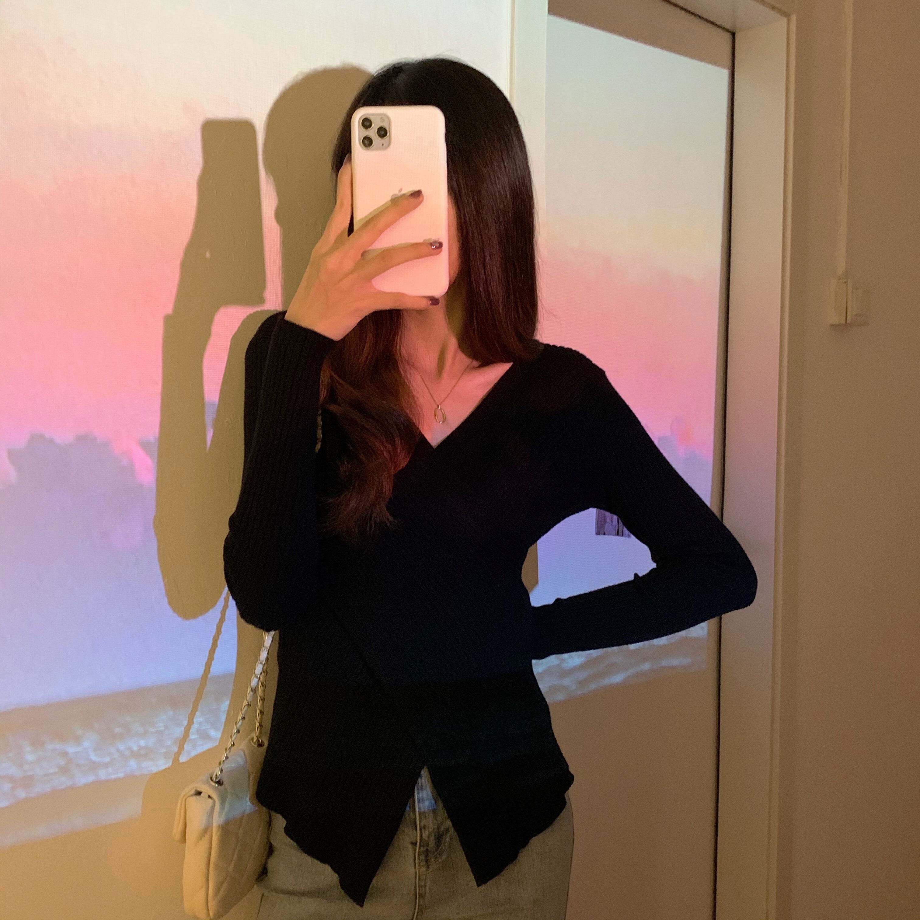 カットソー 魅せる トップス ニットソー セーター ブラック 黒 グレー 灰色 ブラウン 茶色 アプリコット レギュラー丈 袖あり 長袖 Vネック スリム タイト 細身 大人女子 大人 上品 おしゃれ かっこいい クール きれいめ シンプル エレガント レトロ レトロ風 こなれ感 ラフ 個性的 デザイン 主役級 存在感 無地 秋 冬 10代 20代 30代 レディース 女性用 オフィス ビジネス OL 通勤 学生 通学 着回し 普段使い ファッション コーデ ワンサイズ
