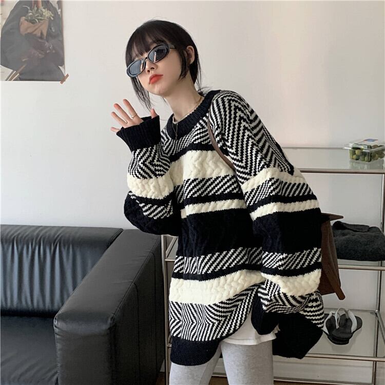 セーター トップス 袖あり 長袖 ラウンドネック もこもこ ニット かわいい 大人可愛い カジュアル おしゃれ お洒落 かっこいい レトロ 大人女子 こなれ感 ラフ メンズライク マニッシュ ボーイッシュ キュート ルーズ 個性的 クール モード系 モダン 主役級 存在感 ボーダー 秋 冬 10代 20代 30代 40代 レディース 女性用 男女兼用 ママ 学生 通学 デート お出かけ 休日 アウトドア 旅行 着回し 普段使い 重ね着 ファッション コーデ スタイル 楽ちん 暖かい 防寒 体系カバー 人気