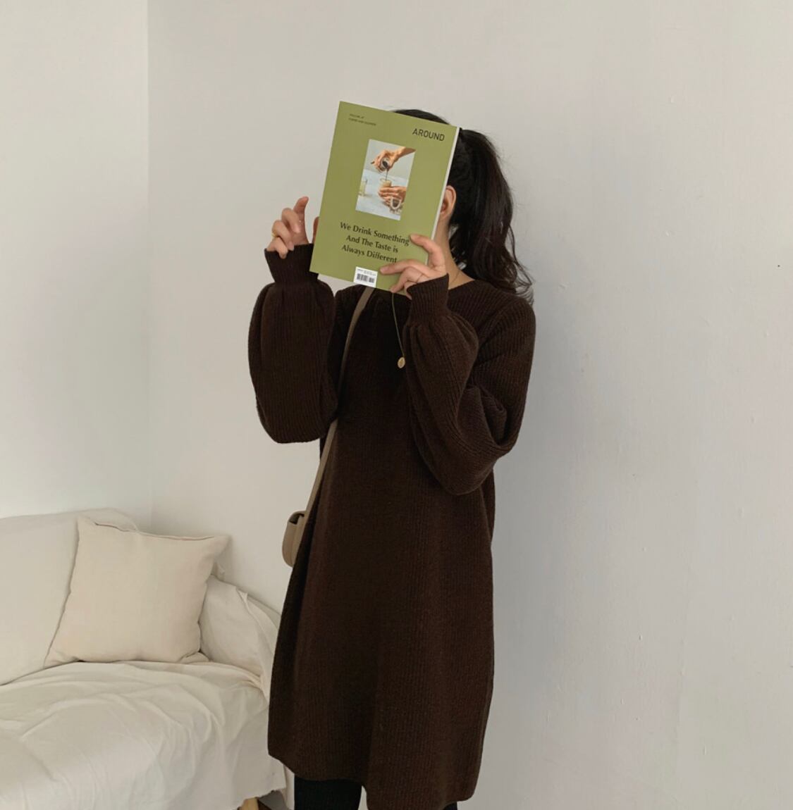 オーバーサイズのニットなので体型カバーにもなります。