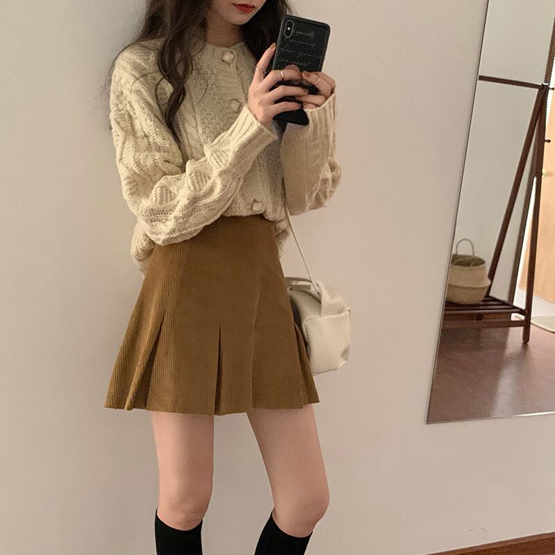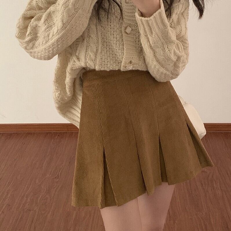 コーデユロイ生地なのでミニスカートでも可愛すぎない印象を与えてくれます‼