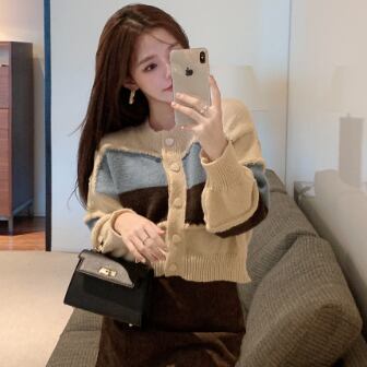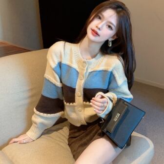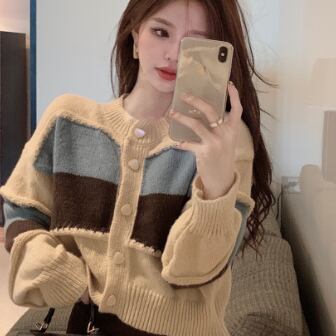 おしゃれなニットカーディガンが入荷しました!Uネックでスリムなシルエットが女性らしく、トップスやアウターとして活躍してくれます。カジュアルなデニムや、きれいめなパンツとの相性も良く、着回し力抜群です。切り替えデザインがポイントで、スマートな印象を与えてくれます。