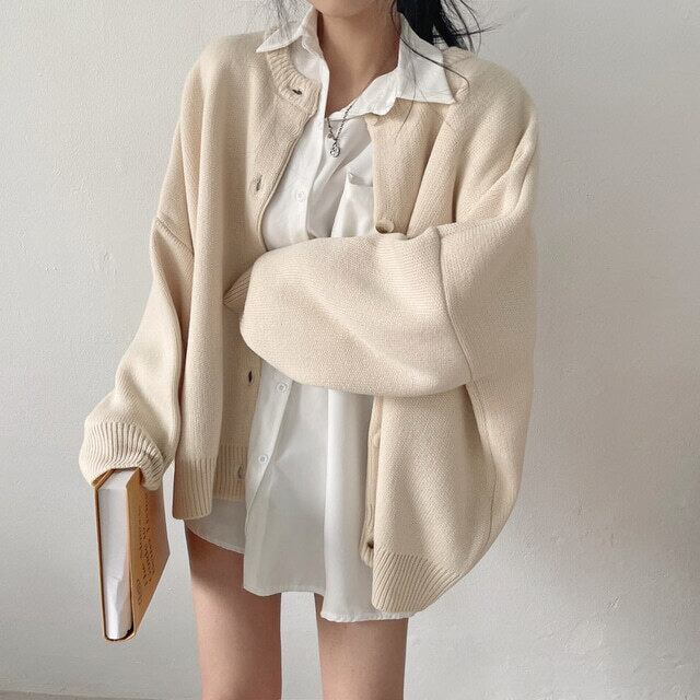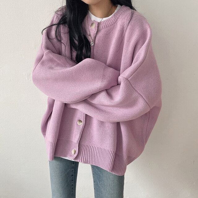 カーディガン ニットコート シンプル トップス ブラック 黒 アプリコット ピンク グリーン 緑 レギュラー丈 袖あり 長袖 ラウンドネック ワイド シングルブレスト ボタン アクリル 大人女子 大人 上品 おしゃれ きれいめ シンプル カジュアル レトロ レトロ風 こなれ感 ラフ ルーズ シルエット 主役級 存在感 無地 秋 冬 10代 20代 30代 レディース 女性用 ママ オフィス ビジネス OL 通勤 学生 通学 着回し 普段使い 暖かい 防寒 ワンサイズ