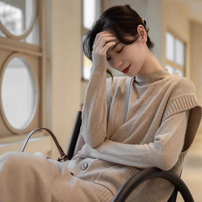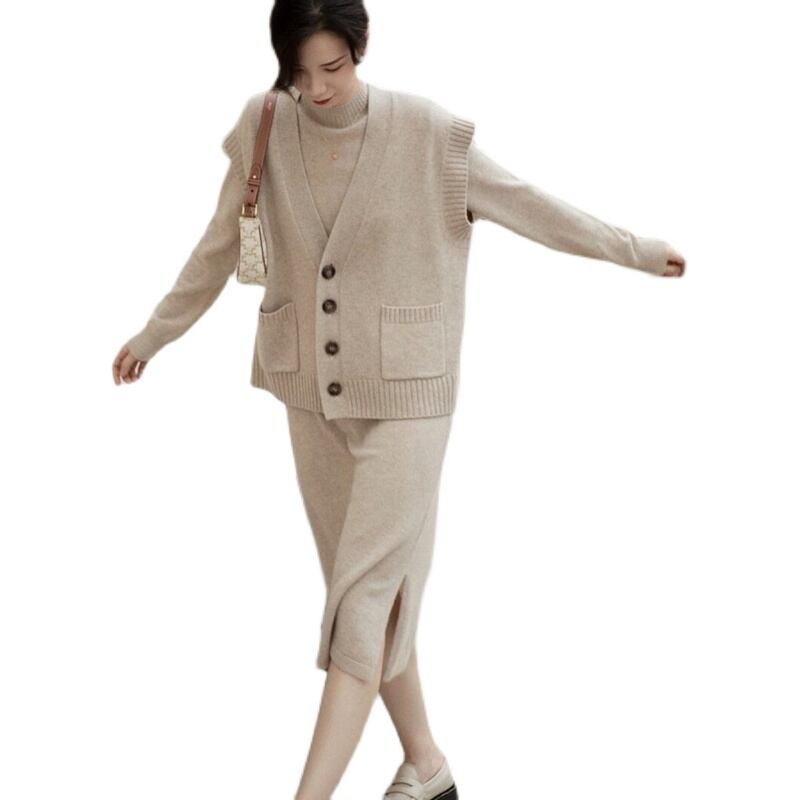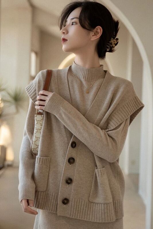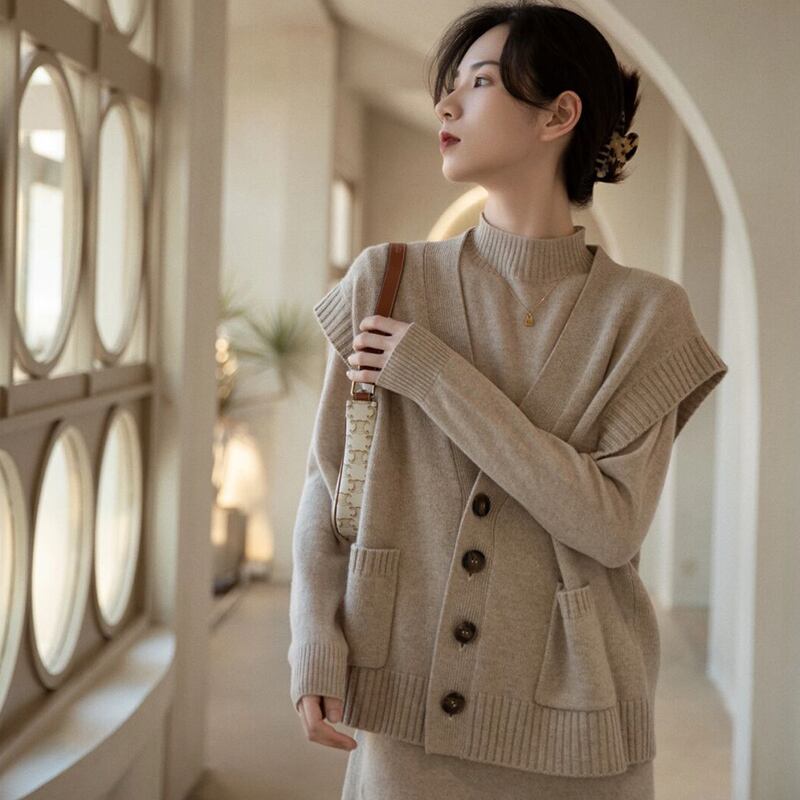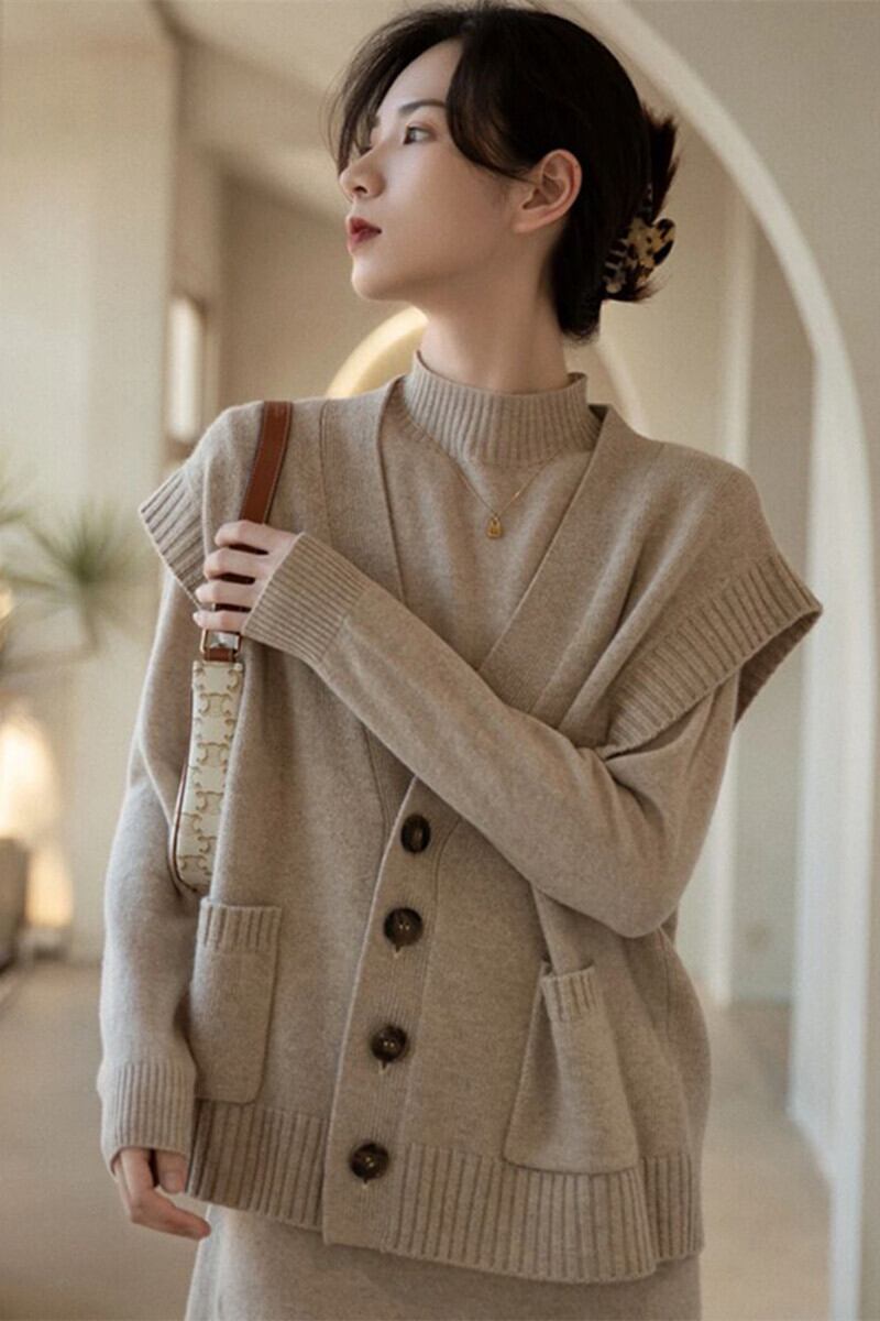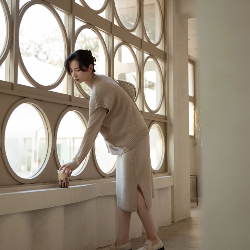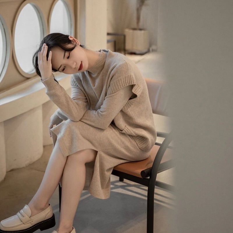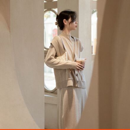 ニットワンピースとベストのツーピーススーツ