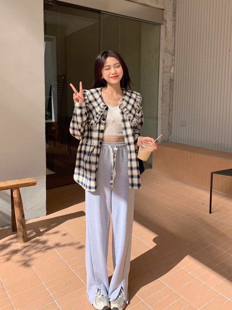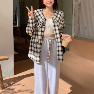 「シャツ トップス アウター ブラウス カーディガン チュニック コート 上着」と、着回し力抜群のアイテムが勢揃いの長袖トップス。ドールカラーにフリルやポケット、チェック柄など、さまざまなデザインで個性を演出できます。襟付きできちんと感もありますが、薄手の素材で着心地はラフな印象。大人可愛い、韓国系ファッションにぴったりです。