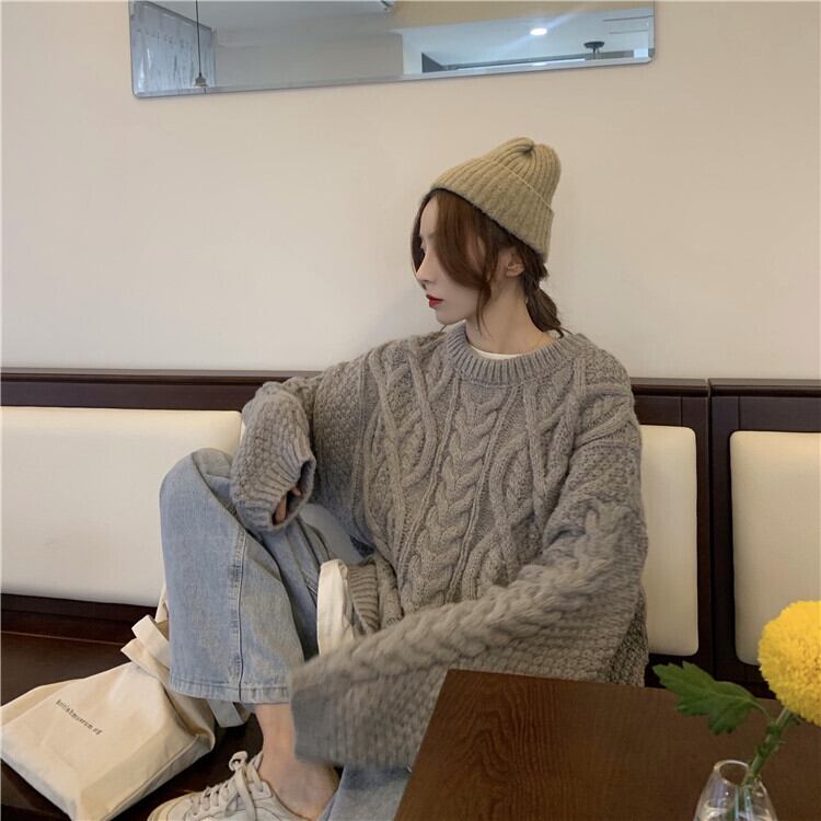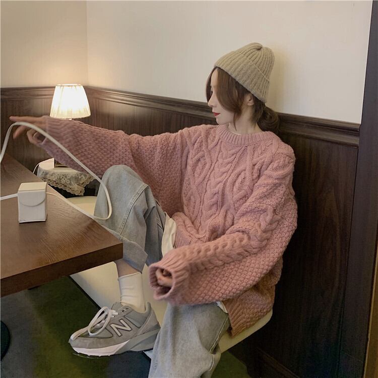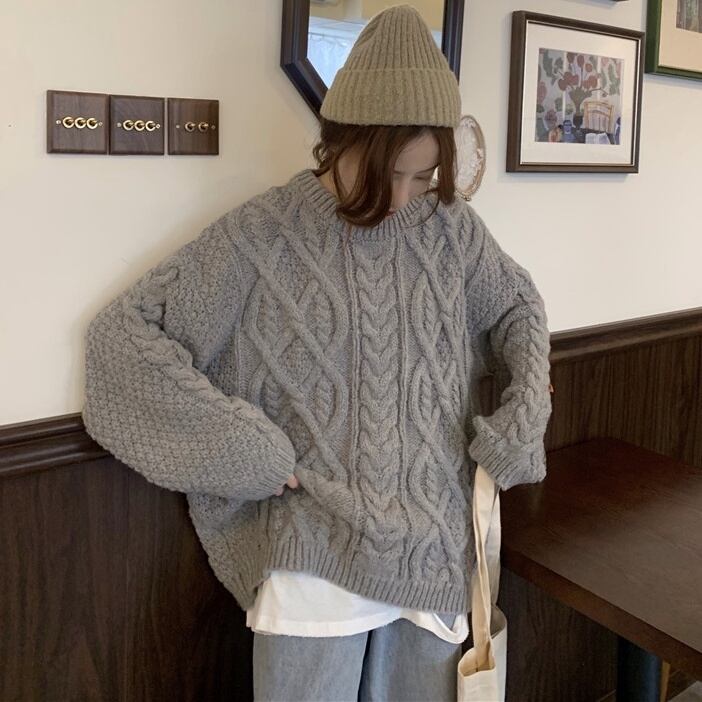 ビッグサイズが可愛いケーブルニットです。
