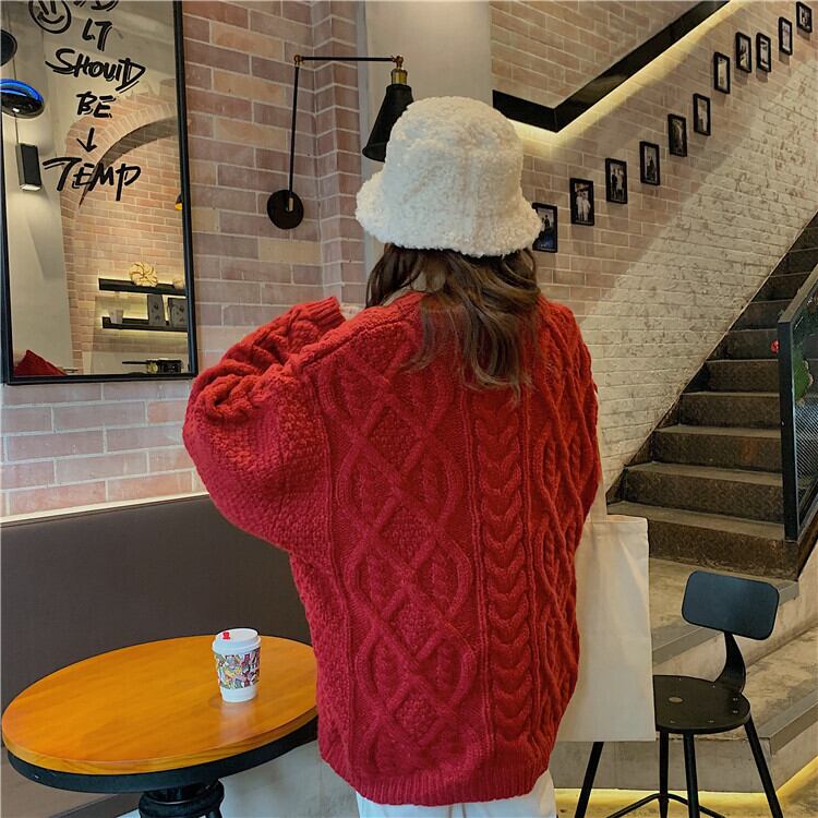 厚手であたたかく、編み込みのクリエイティブな手作り感も魅力のひとつです。こなれ感のあるルーズなデザインで、体型カバーもできるので、自信を持って着こなせます。キュートでガーリー、一方で大人っぽい成熟した美しさも表現できる主役級の存在感のある一着です。