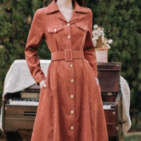 コーデュロイ素材のトレンチ風ワンピースが登場!ベルトでウエストマークしてきれいめスタイルも、ノンベルトでラフなスタイルもお楽しみいただけます。トレンドのVネックと襟付きで大人っぽさもプラス。ミモレ丈が女性らしく上品な印象を与えます。また、オールインワンデザインだから、着心地も楽ちんです。オレンジのカラーは秋冬にぴったりで、主役級の存在感があります。きれいめからカジュアルまで、様々なシーンで活躍するアイテムです。このワンピースがあなたのファッションの主役になってくれること間違いなし!