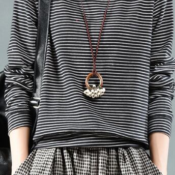 1枚でも、重ね着にも使えるボーダートップスです。
