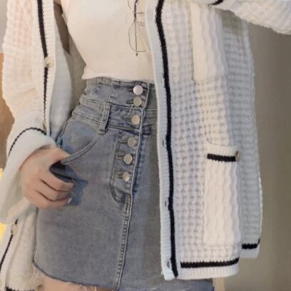 2色使いのセーターカーディガンです。