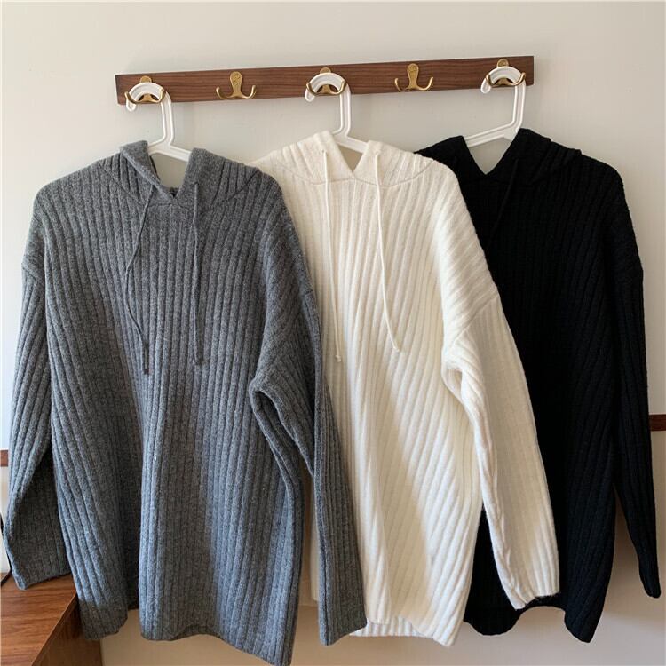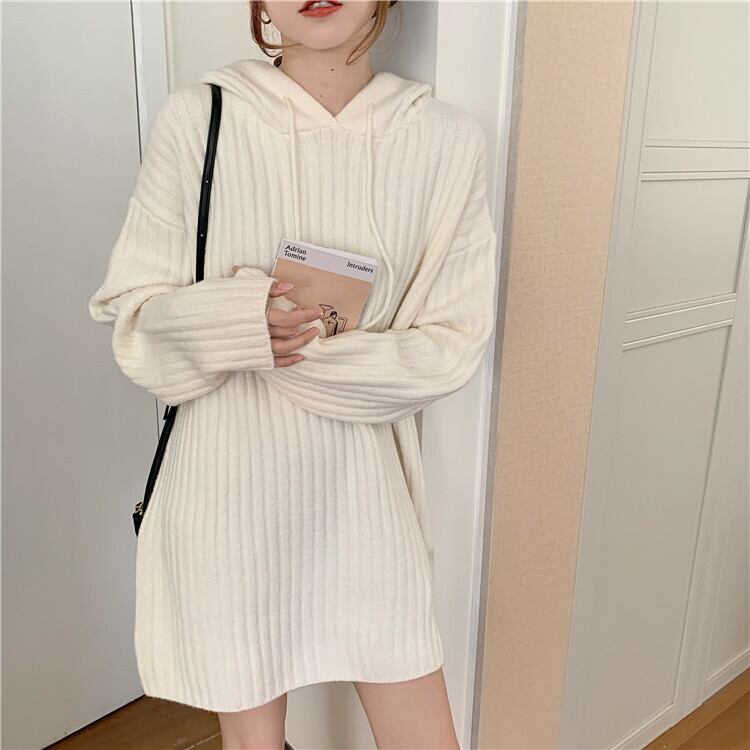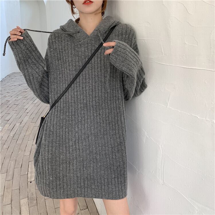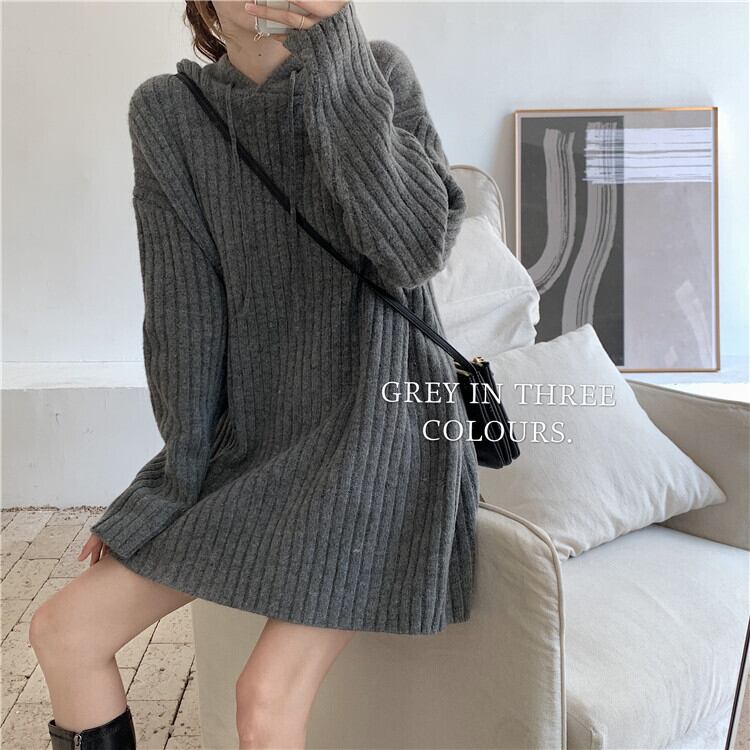 フード付き ニット ワンピース セーター グレー 灰色 ホワイト 白 ブラック 黒 フーディー トップス ミニ丈 ショート丈 ひざ丈 膝上 袖あり 長袖 ボリューム袖 萌袖 Vネック ストレート Iライン かわいい 大人可愛い シンプル カジュアル 大人 上品 おしゃれ お洒落 大人女子 こなれ感 キュート 主役級 存在感 秋 冬 2021 レディース 女性用 学生 デート お出かけ 女子会 イベント 旅行 着回し 普段使い 韓国系 モテ トレンド 流行 インスタ映え おすすめ インポート ワンサイズ