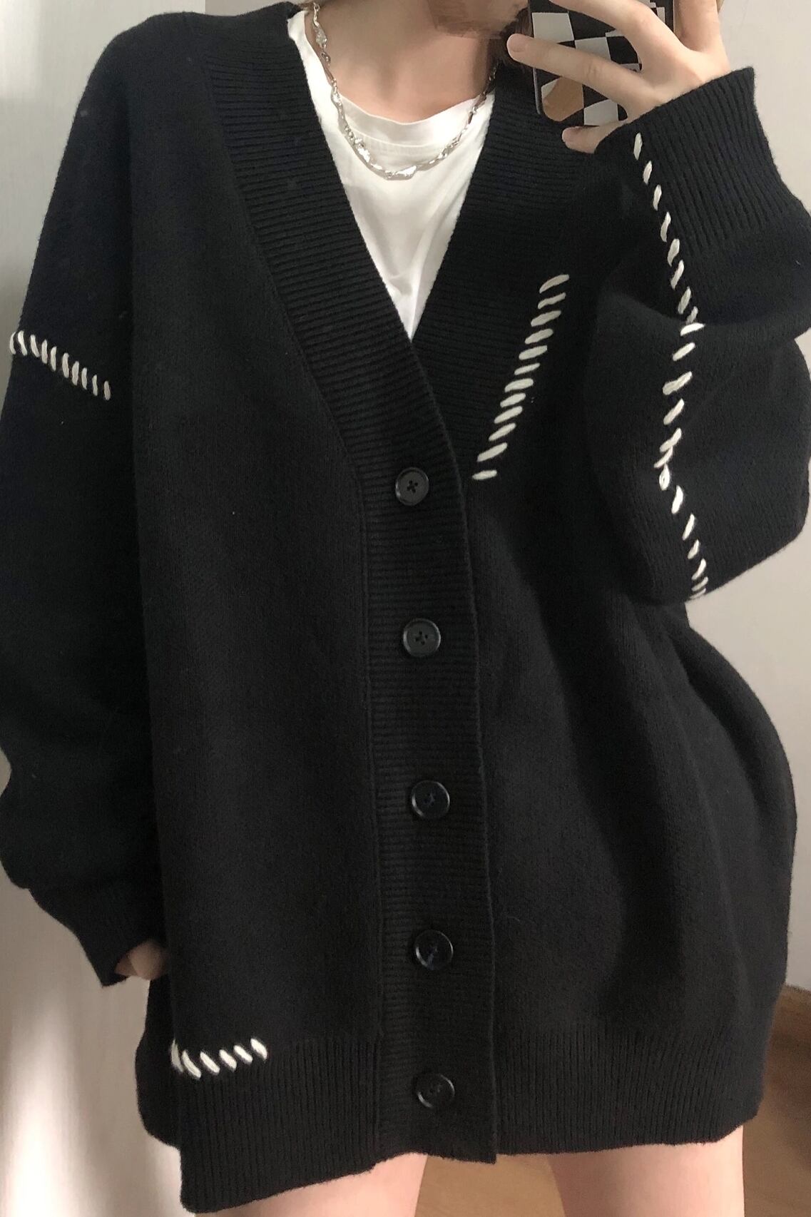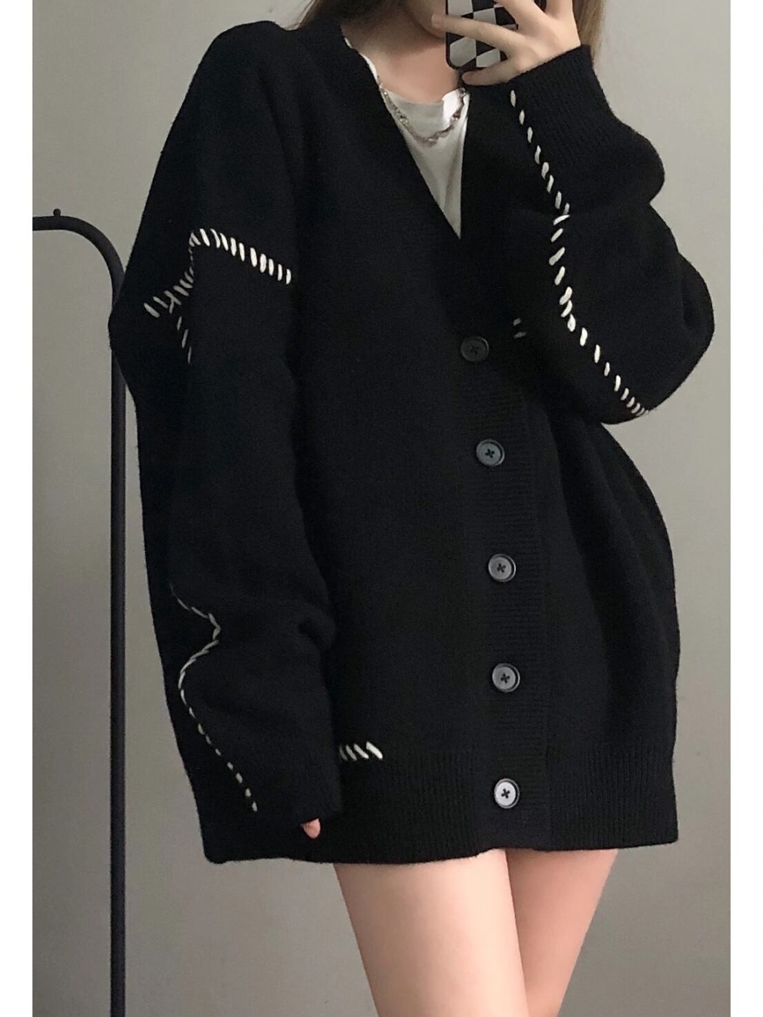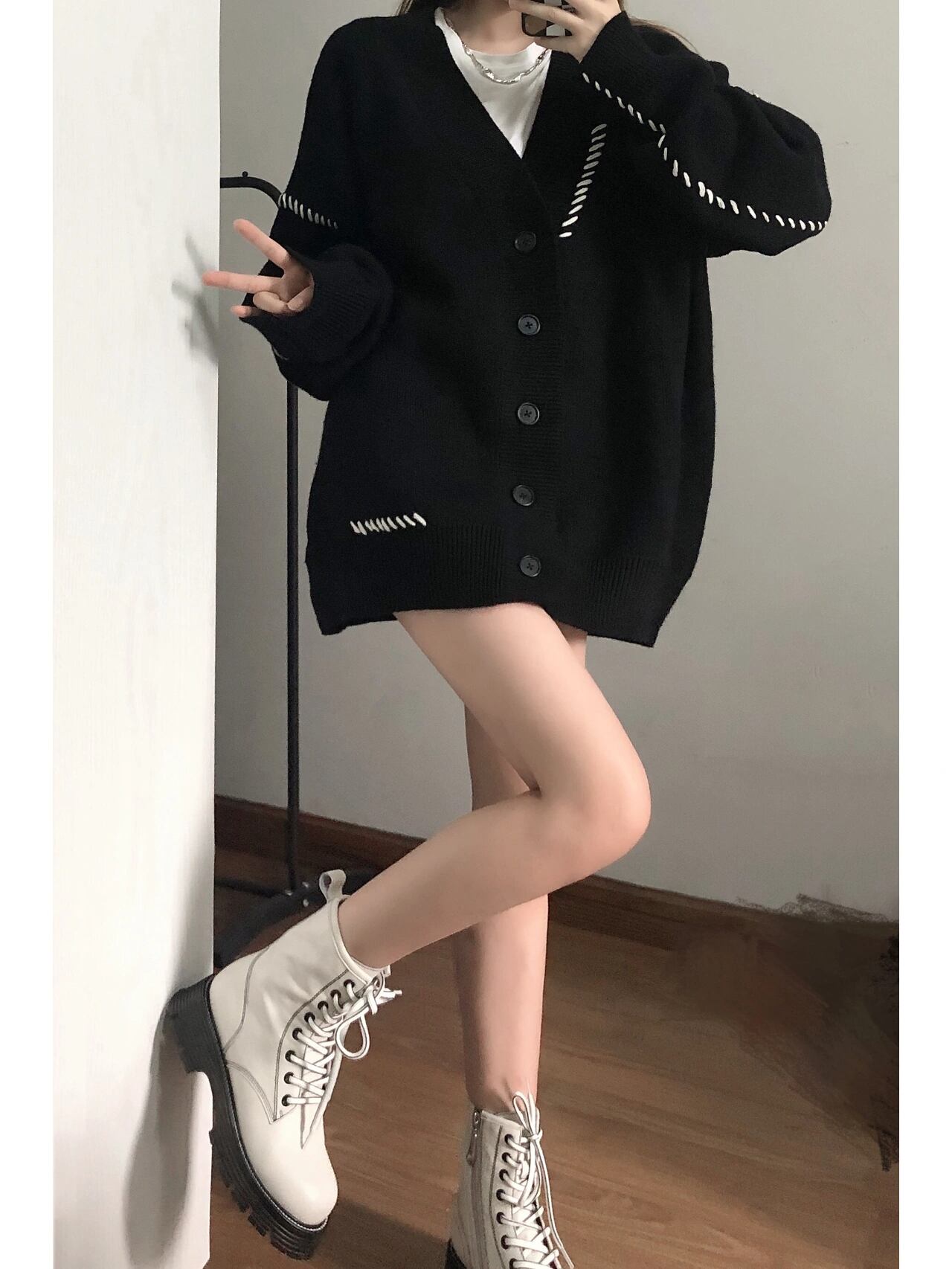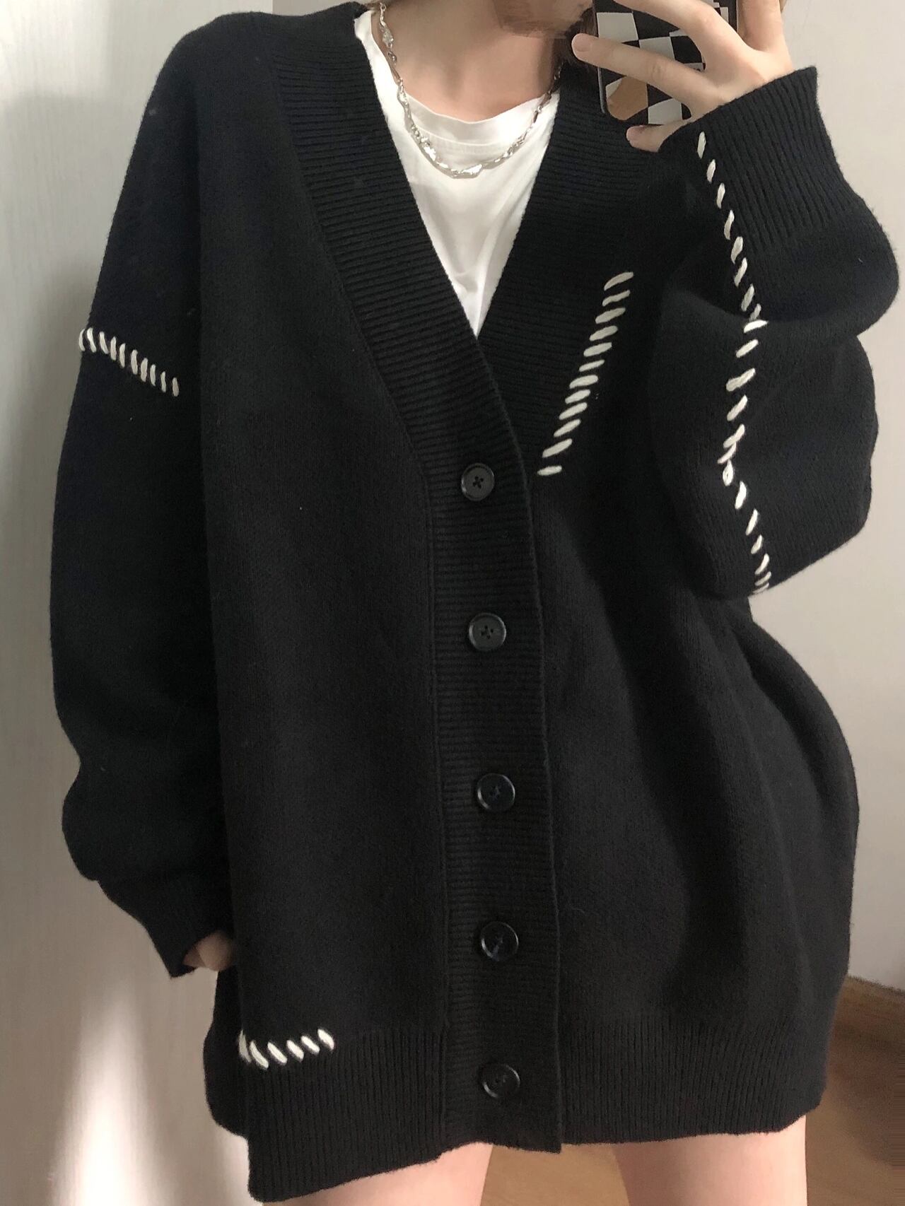 日ごろのスタイルに新しいアレンジを加えたいあなた、ルーズなシルエットがお好きな方、ぜひこのニットカーディガンを取り入れてみてください。今季の主役になること間違いなしだと思います。