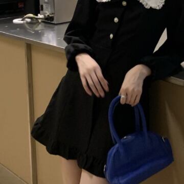 「魅せるワンピース」は、上品で個性的なデザインが魅力のミニ丈ワンピースです。黒をベースにしたモノトーンカラーが大人っぽく、清潔感のある印象を与えます。襟付きのデザインで、長袖であっても、程よく抜け感を演出してくれるのがポイント。ボタンがアクセントになっており、洗練されたエレガントなレトロ風スタイルにも、可愛らしいキュートなスタイルにも似合う万能アイテムです。
