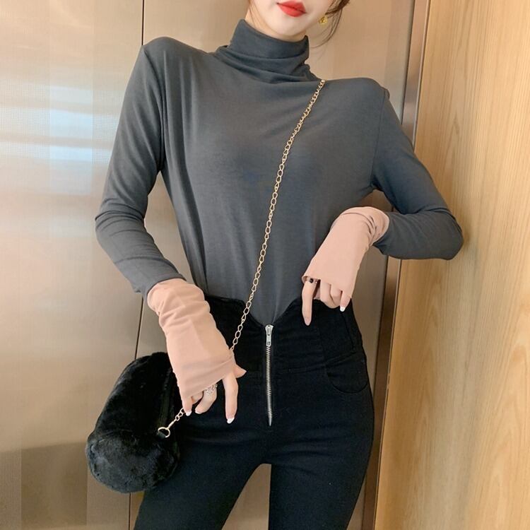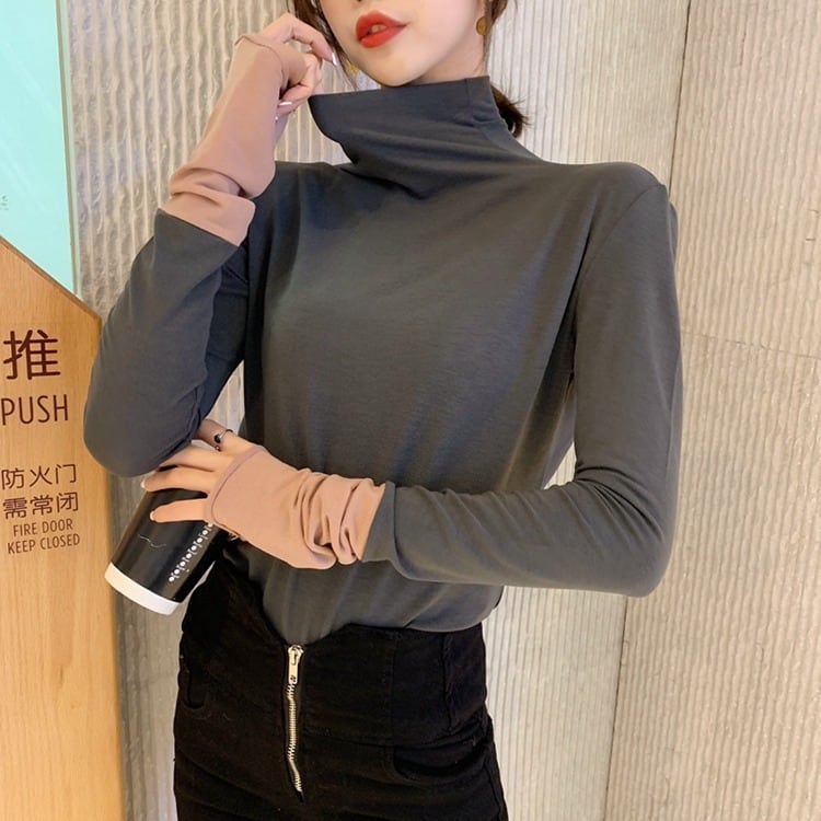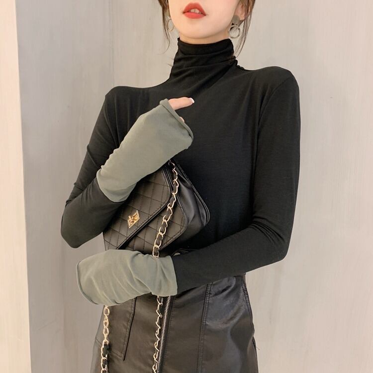 デザイントップス バイカラー トップス カットソー 長袖 萌袖 タートルネック タイト 細身 かわいい 大人可愛い シンプル カジュアル おしゃれ お洒落 大人可愛い 大人女子 こなれ感 メンズライク キュート ガーリー 個性的 主役級 存在感 無地 春 秋 冬 10代 20代 30代 レディース 女性用 女の子 学生 通学 デート お出かけ 女子会 休日 着回し 普段使い 重ね着 韓国 韓国系 オルチャン ファッション コーデ スタイル 暖かい モテ 新作 定番 送料無料 トレンド 流行 インスタ映え