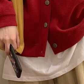 このカーディガンは、レッドとブラックの2色展開で、どちらもシンプルでありながら、大人可愛いスタイルに仕上げることができます。