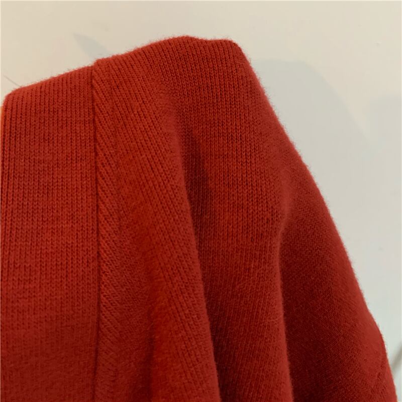 Vネックでデコルテを綺麗に見せてくれるので、首元スッキリな着こなしを楽しめます。さらに、細身のデザインで非常に着やせ効果があります。パンツスタイルからワンピースまで様々な着こなしに合わせやすく、一枚あると重宝します。
