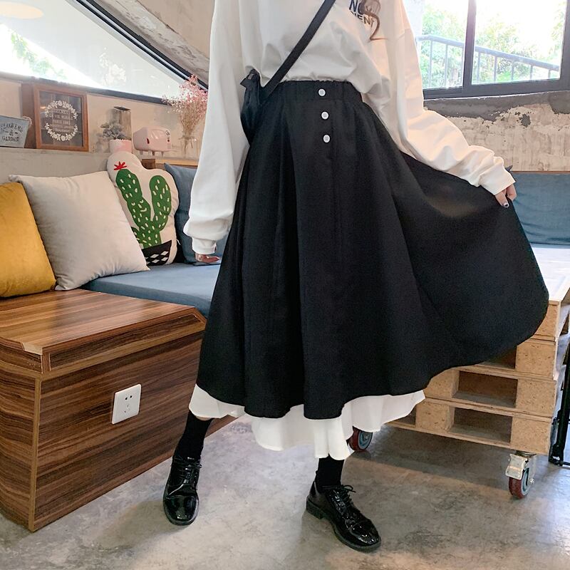 人気のロングスカートが新登場!黒を基調としたモノトーンの色合いが大人可愛いフレアスカートです。Aラインのシルエットが脚長効果を発揮し、ハイウエストになっているため、ウエストラインも綺麗に見せてくれます。ウエストはゴム仕様で、調節もしやすく、ボタンが一個ついているので安心感もあります。素材は薄手で柔らかく、また丈夫なので長く着用できます。シンプルで上品なデザインなので、オフィスやパーティー、休日のカジュアルなおしゃれまで、様々な場面での着こなしが可能です。大人女子にふさわしいこなれ感と抜け感のある一枚で、存在感もばっちり。このロングスカートを履けば、女性らしさがUPし、ワンランク上のおしゃれが実現できます。M、L、XL、2XLのサイズ展開で、マルチな着こなしを楽しんでくださいませ。