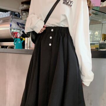 ロングスカート スカート フレアスカート 黒 ブラック モノトーン ロング ロング丈 Aライン ハイウエスト ウエストゴム ボタン 薄手 かわいい 大人可愛い きれいめ シンプル 大人 上品 おしゃれ 大人女子 こなれ感 ガーリー ルーズ 存在感 抜け感 無地 春 秋 冬 誕生日 クリスマス バレンタイン 10代 20代 OL 通勤 学生 通学 デート お出かけ 女子会 休日 イベント 旅行 ホテル レストラン 着回し 普段使い ファッション コーデ スタイル 脚長 インスタ映え M L XL 2XL