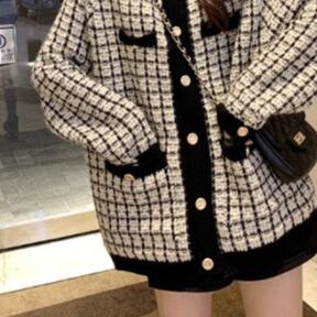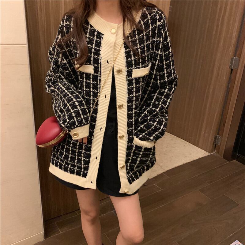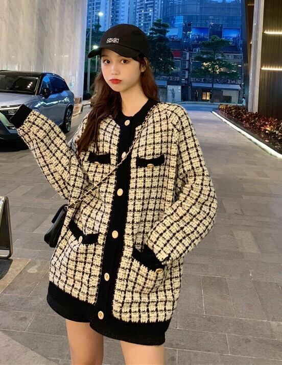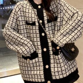 商品名:セーター カーディガントップス ミディアム丈 袖あり ラウンドネック 襟なし ポケット 前開き ニット 厚手 かわいい 大人可愛い きれいめ カジュアル 大人 上品 おしゃれ お洒落 レトロ 大人女子 ラブリー キュート ルーズ モダン 主役級 存在感 柄 格子柄 春 秋 10代 20代 30代 オフィス OL 通勤 学生 通学 デート お出かけ 女子会 休日 旅行 着回し ファッション コーデ 暖かい トレンド インスタ映え 白 ホワイト 黒 ブラック 合わせやすい 人気 新入荷 ファッションコーデ
