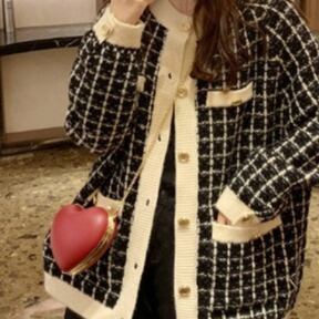格子柄のレトロ感と華やかな金ボタンの組み合わせで女子力UP!
