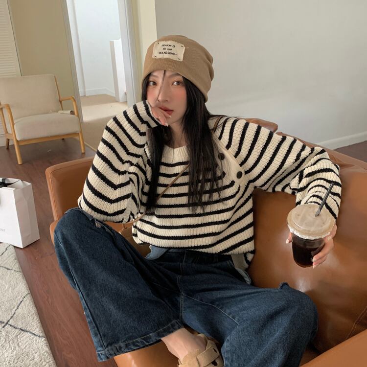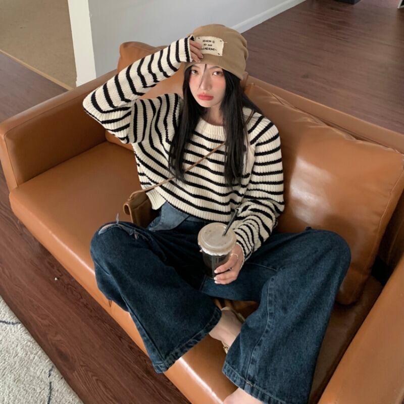 当店自慢のボーダーセーター!トップスニットソーの中でも一際目を引くデザインで、華奢な女性にもぴったりなスリム細身のシルエット。そして何よりもボリューム袖がかわいいアクセントです!ラウンドネックで襟周りもすっきり見えます。大人上品なシンプルなデザインは、オフィススタイルやお食事会などのきれいめシーンにもぴったりです。さらに気軽に着られる、こなれ感のあるラフなスタイリングにも使えます。クールでモードな大人女性には、セクシーでエレガントな雰囲気もオススメです。色は無地で、春、秋、冬の季節感も取り入れつつ普段使いにもぴったりです。誕生日や謝恩会、二次会などのアウトドアイベントから、ホテルやレストランなどのおしゃれな場所までシーンにあわせてお試しください。韓国系オルチャン風に着こなしても素敵です。