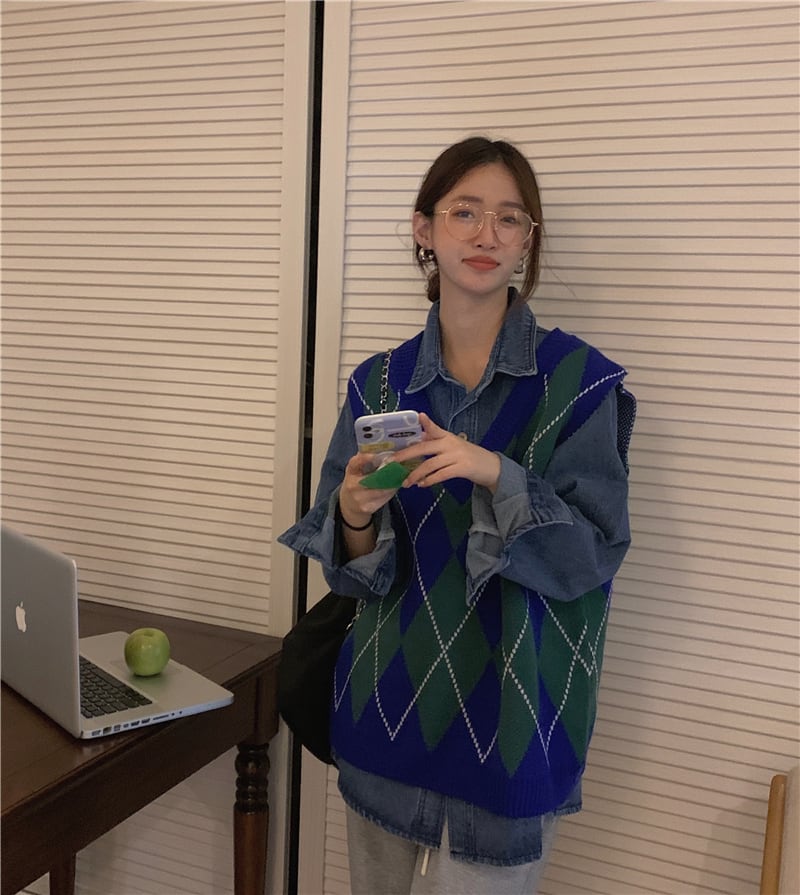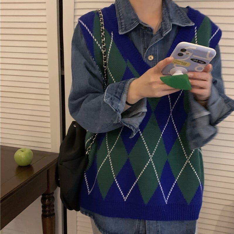 ニットベスト ダイア柄 ブルー グリーン トップス ニットソー セーター ベスト Vネック スリム 細身 ストレート スマート かわいい きれいめ シンプル 大人 上品 おしゃれ 大人可愛い 大人女子 こなれ感 ラフ クール モード系 セクシー エレガント 無地 春 秋 冬 誕生日 謝恩会 二次会 ハロウィン クリスマス バレンタイン レディース 女性用 学生 通学 デート お出かけ 女子会 お泊まり 休日 アウトドア パーティー イベント リゾート 旅行 ホテル レストラン 着回し 普段使い 韓国 定番