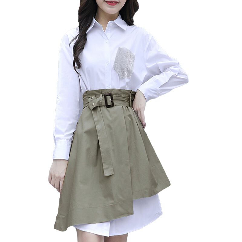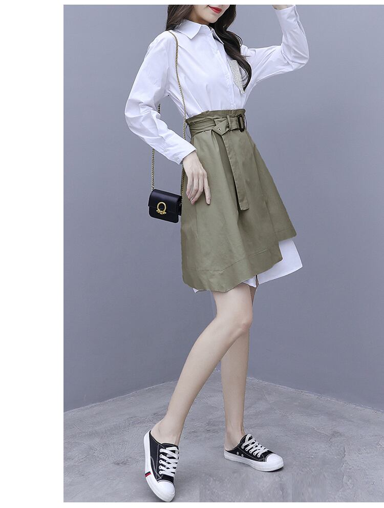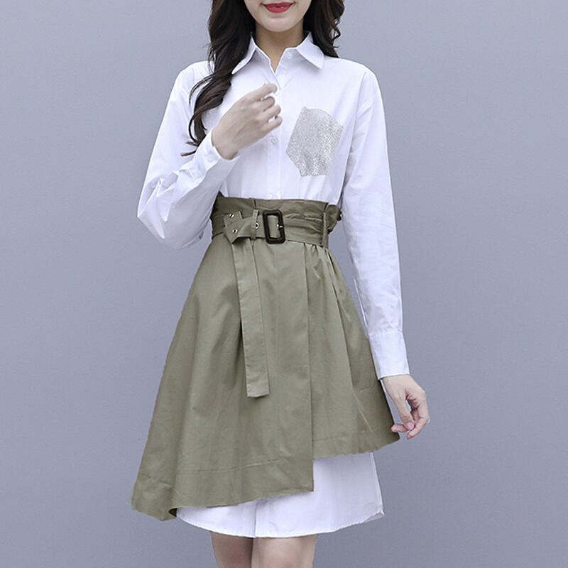 シャツワンピース×スカートのツーピーススーツ