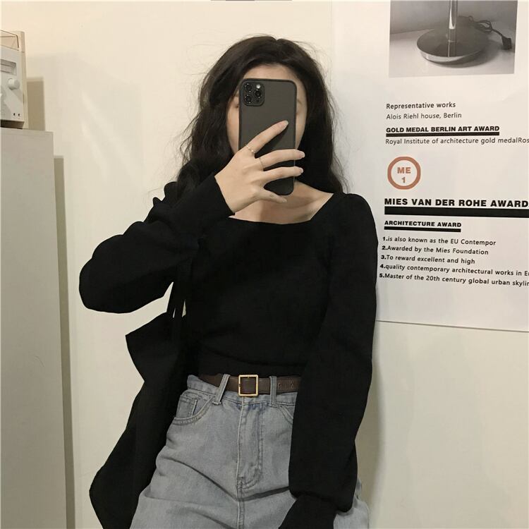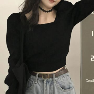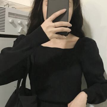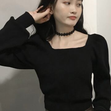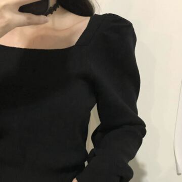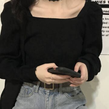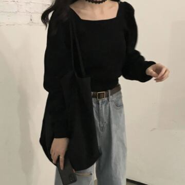 カットソー 魅せる トップス プルオーバー ブラック 黒 ショート丈 袖あり 長袖 ボリューム袖 パフスリーブ スクエアネック 大人女子 大人 上品 おしゃれ カジュアル エレガント レトロ レトロ風 こなれ感 ラフ キュート ガーリー かわいい 女子 個性的 デザイン 主役級 存在感 無地 春 スプリング 秋 オータム 10代 20代 レディース 女性用 学生 通学 デート お出かけ 女子会 着回し 普段使い トレンド ファッション コーデ ワンサイズ