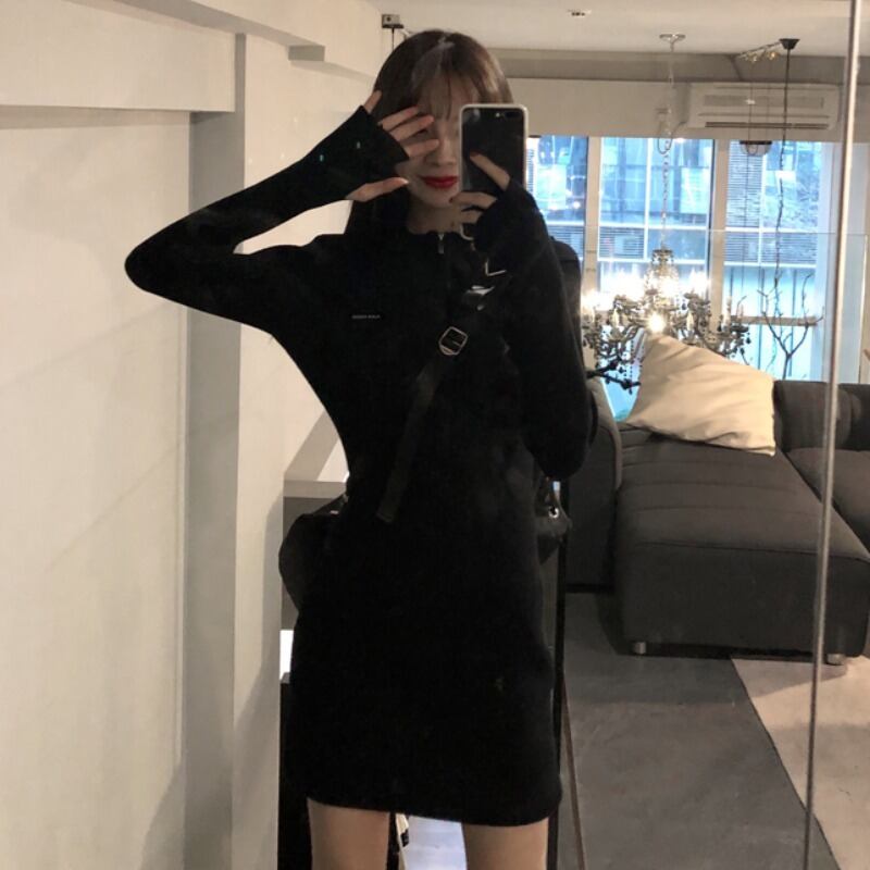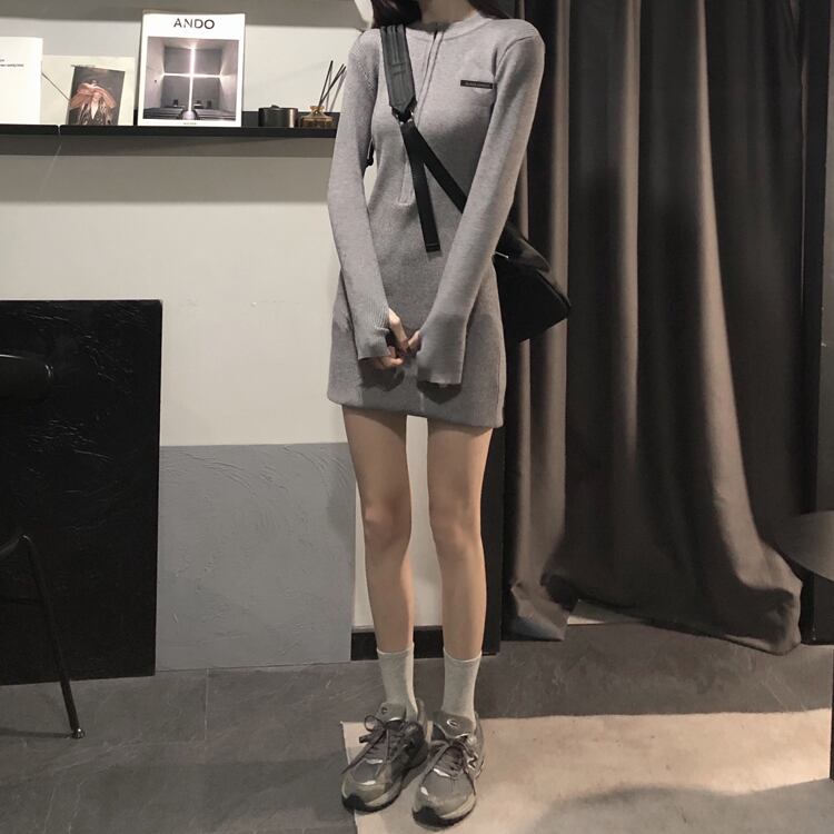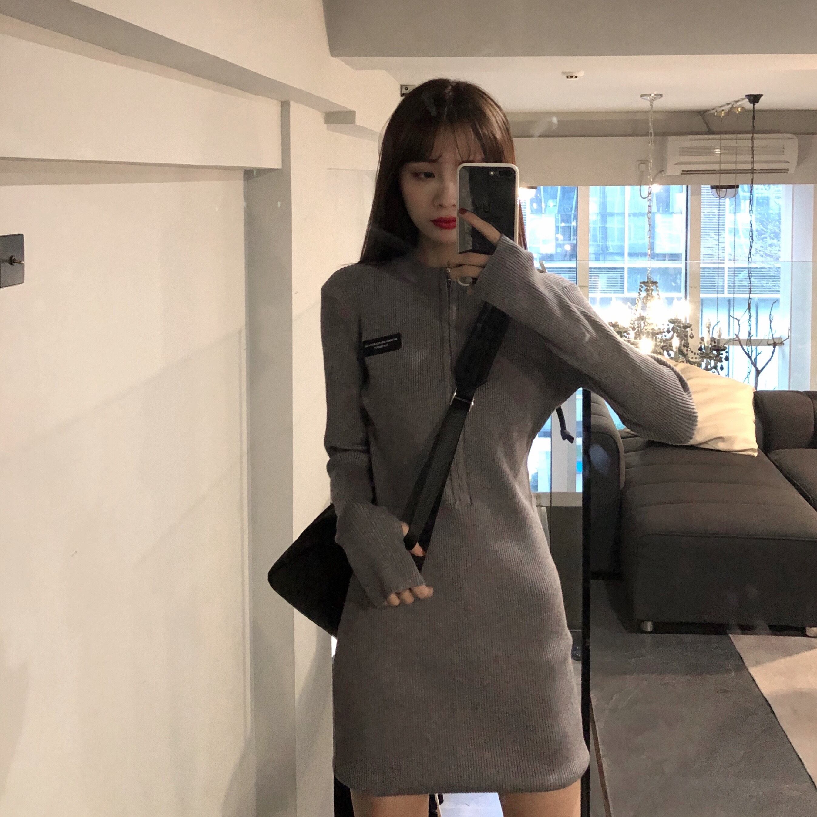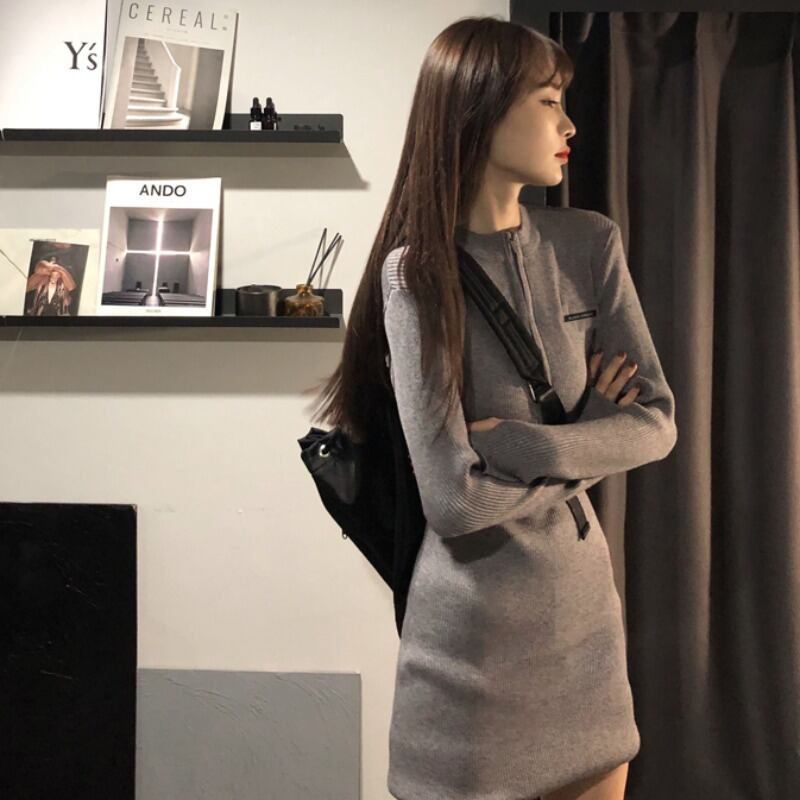 ミニワンピース 魅せる ワンピース ミニスカート ブラック 黒 グレー 灰色 ミニ丈 袖あり 長袖 ラウンドネック スリム タイト 細身 ファスナー ジッパー 大人女子 大人 上品 おしゃれ かっこいい クール モード系 カジュアル レトロ レトロ風 こなれ感 ラフ 個性的 デザイン 主役級 存在感 スポーティー 無地 春 スプリング 秋 オータム 10代 20代 レディース 女性用 学生 通学 デート お出かけ 女子会 着回し 普段使い ファッション コーデ ワンサイズ